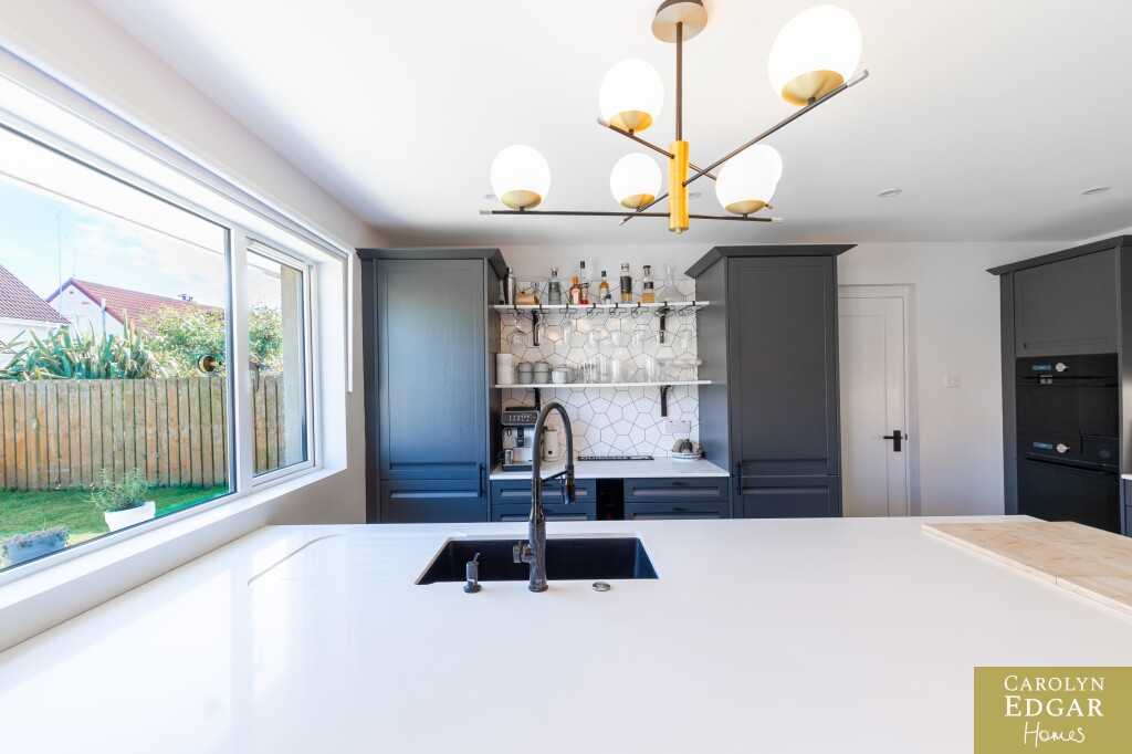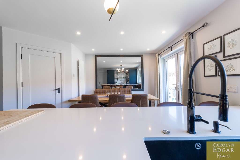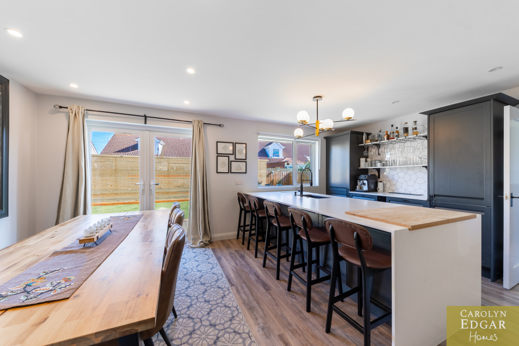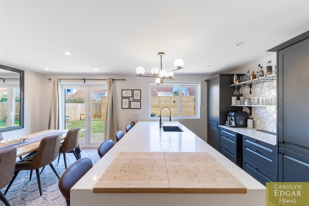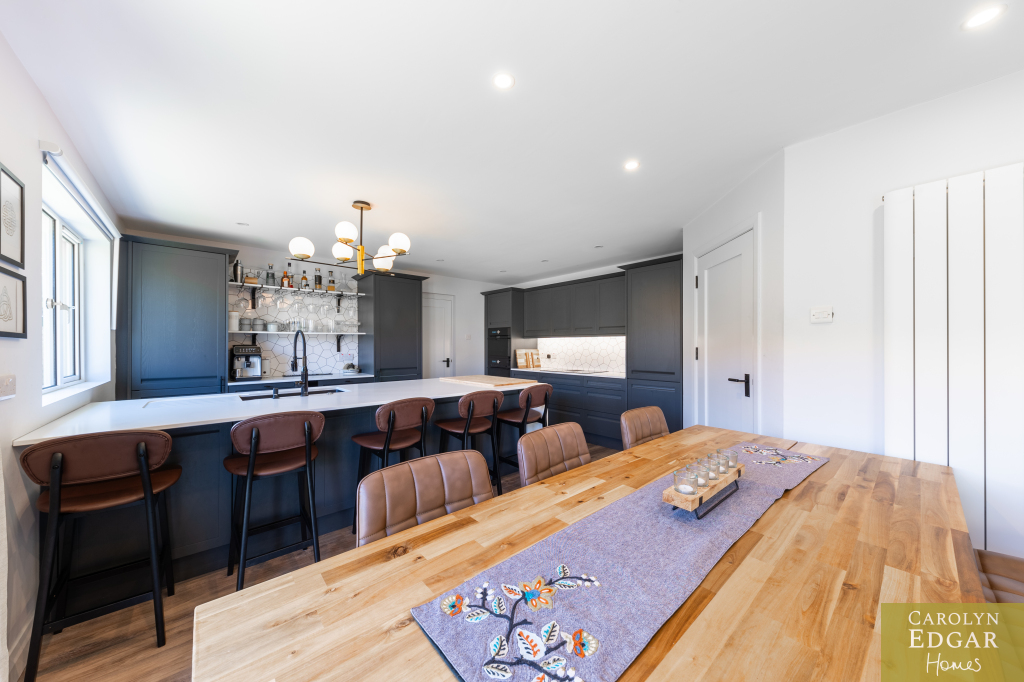 Bespoke Luxury Fitted Kitchen with Quartz Works Surfaces, Centre Island and Casual Dining Area
