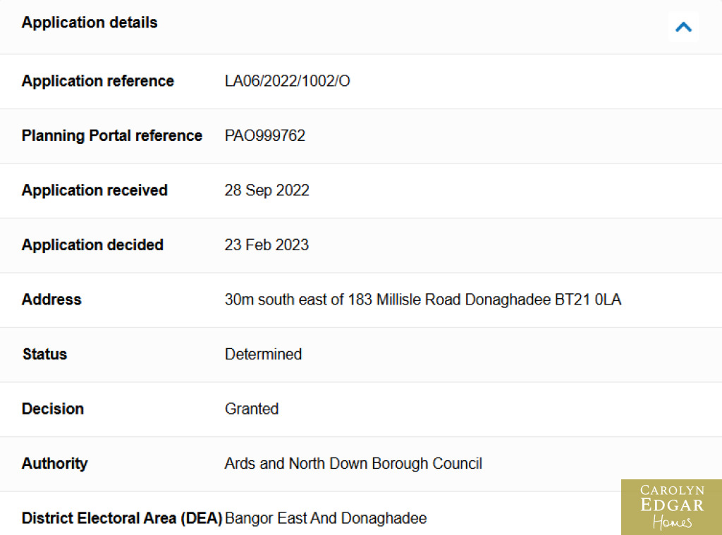 Situated just off the Millisle Road in Donaghadee in a perfectly peaceful and tranquil location surrounded by lush countryside this superb site is only a short distance to the bustling town centre of Donaghadee with its great range of award-winning restaurants, local amenities, harbour and schools and with beautiful coastal walks within a few minutes stroll makes this the idyllic setting for those looking for a semi-rural but convenient and sought after location. Set on a 0.5 acre site with planning permission for a detached dwelling with garage the site is accessed off a private laneway and with approved planning offers buyers the superb opportunity to build a detached residence of their own specification and style.......