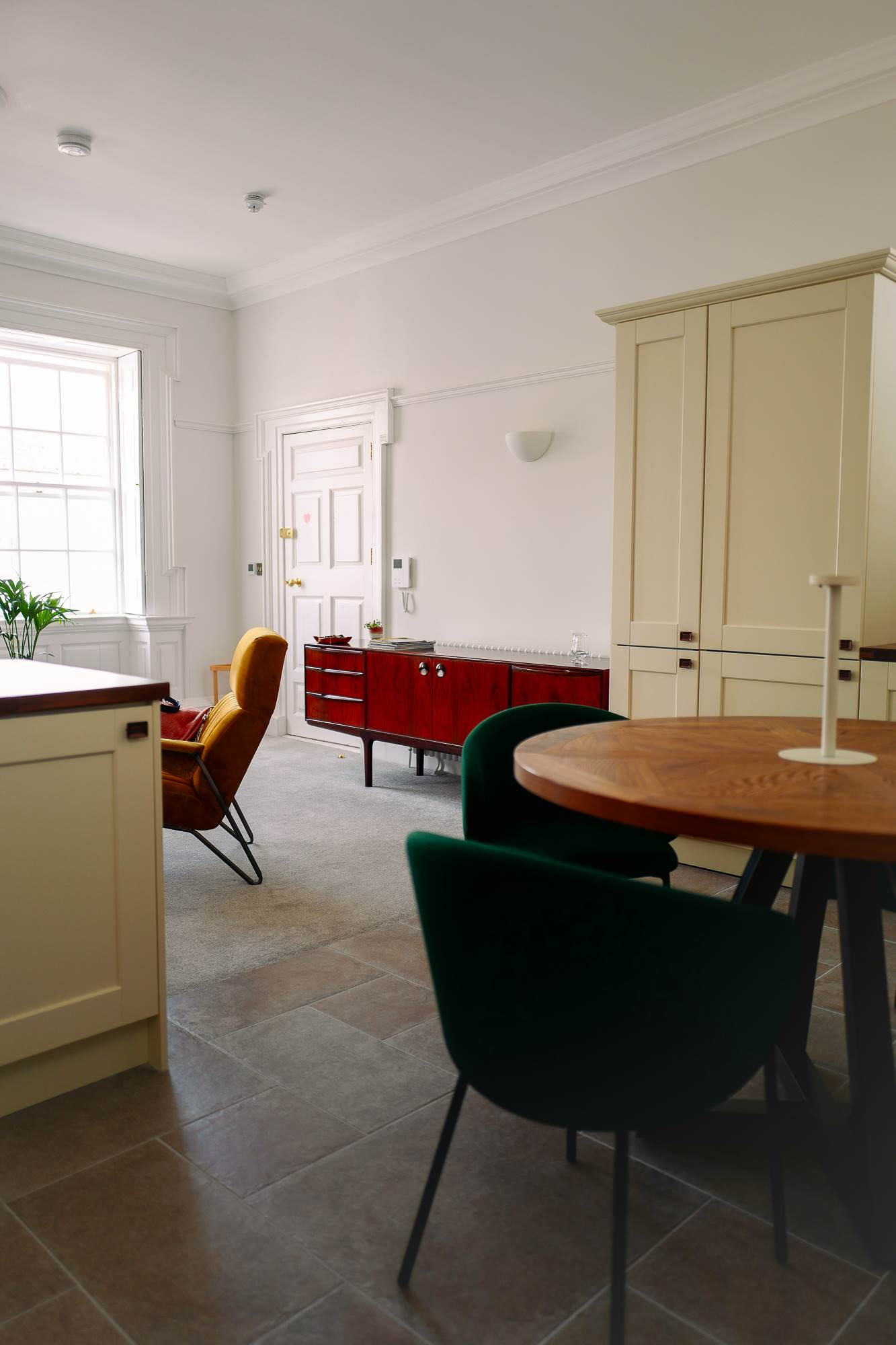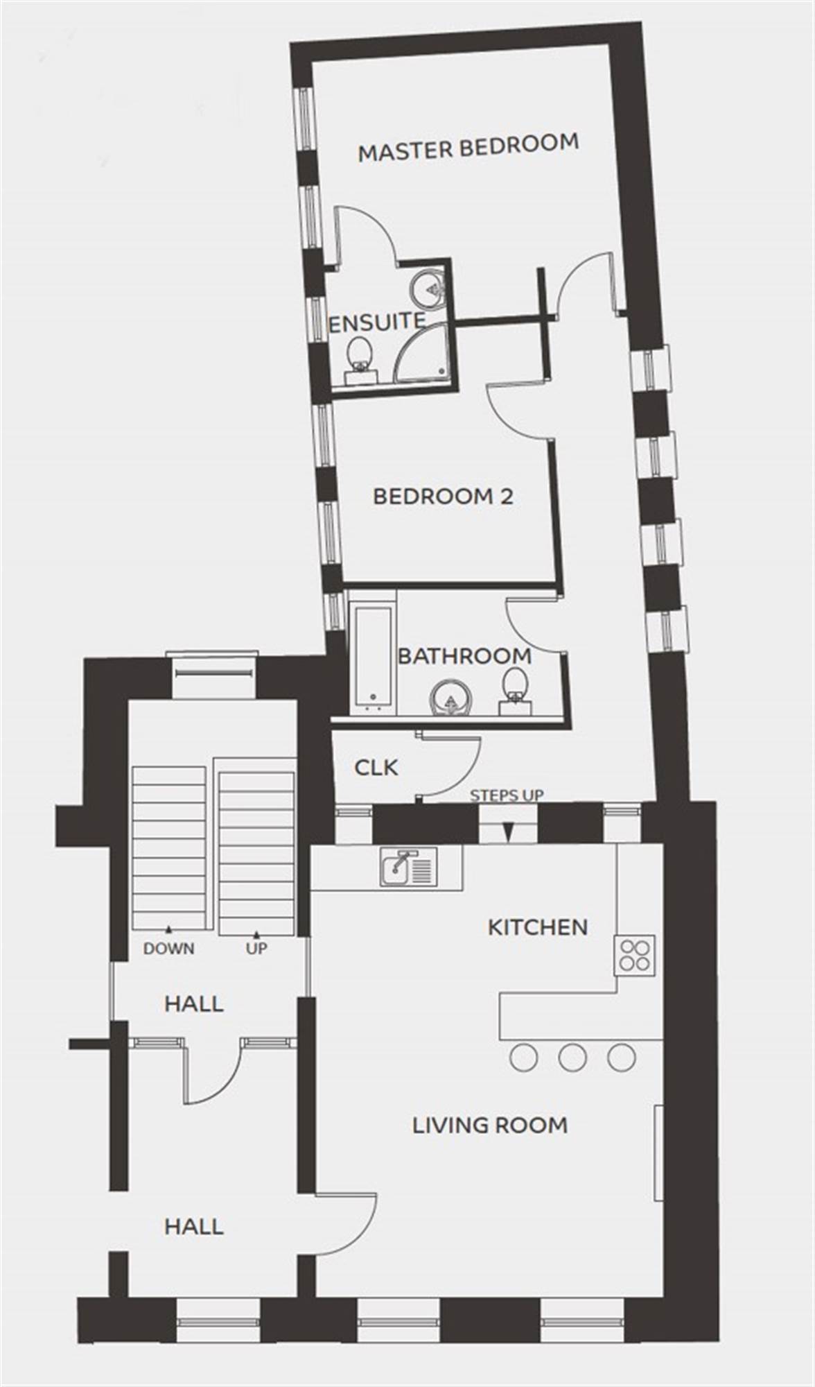 This first floor apartment consists of an open plan living space, with luxury fitted kitchen and dining space. There are two good sized bedrooms, bedroom one benefits from an en suite shower room and there is also a main bathroom. It has been tastefully refurbished retaining all the original features where possible yet benefits from modern day requirements.