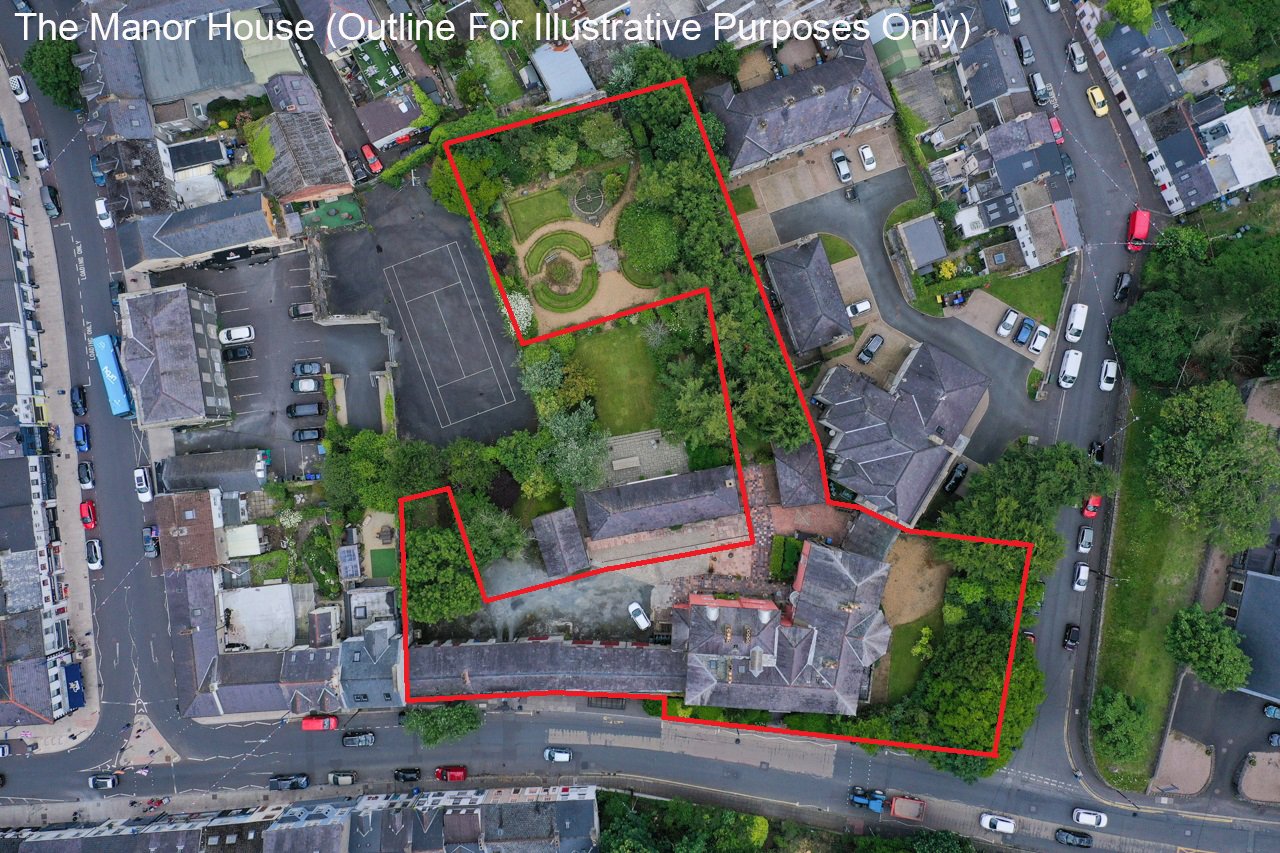 Overall site in the Centre of Donaghadee is c.0.8 acres which will be split if the Manor House is purchased without the Stable House - See map.