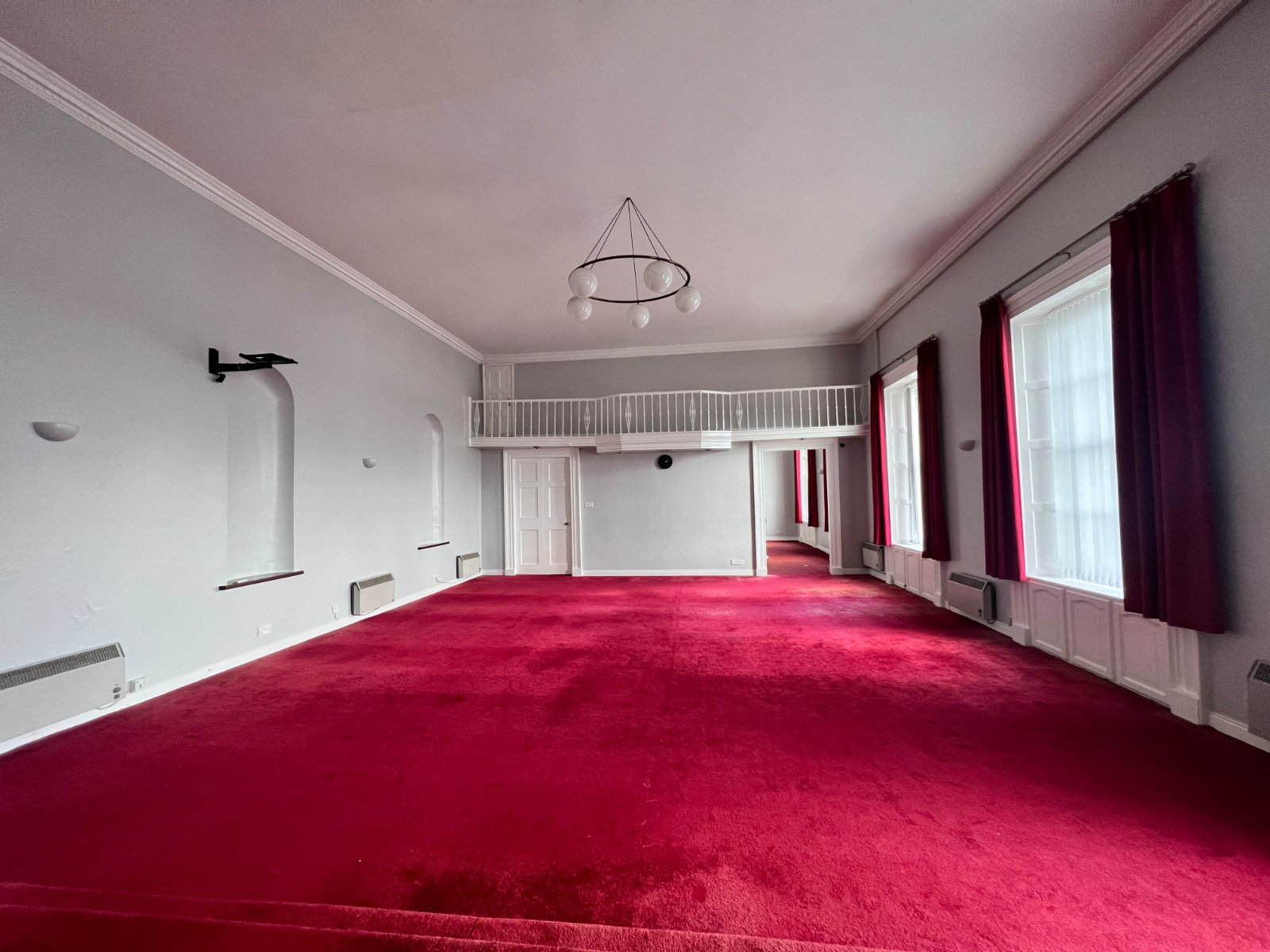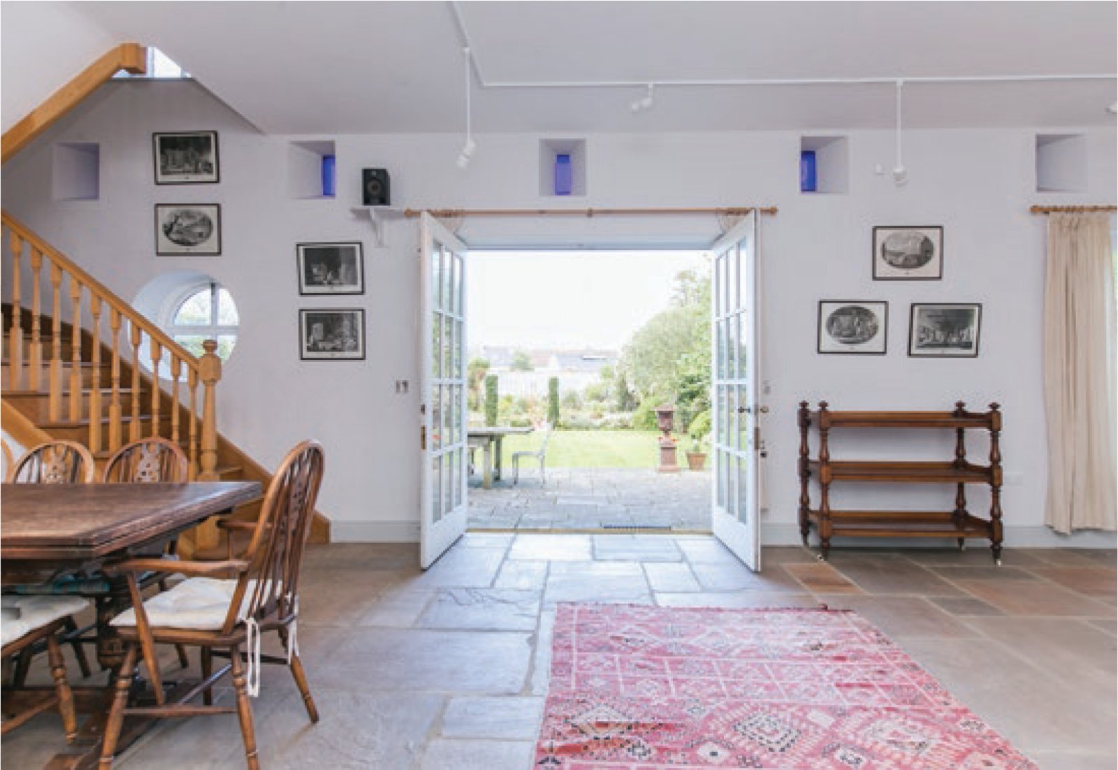 The potential self-contained apartment is approached via the library corridor and also by its own rear door entrance. Currently the kitchen is used as an office. There is also a spacious bedroom and bathroom. The bedroom gives access to two interconnecting rooms which sit over the garages. These large rooms could be put to a number of uses, including further accommodation, general amenity space or incorporated into the garages/coach houses below. Consents may be required.