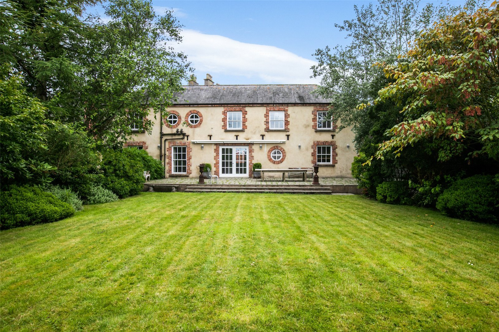 The Manor House encompasses the size and grandeur of that of a fine country seat yet is uniquely positioned on its own private grounds in the bustling harbour town of Donaghadee. The Manor House is approached either by the pedestrian entrance with a pathway leading to the front door or the arched vehicular side entrance with electric gates which arrives into the courtyard. While the house impresses by its grandeur and scale, it exudes character and style which are enhanced by its unique architectural and decorative features, all of which make it a fabulous family home. Over the centuries the house has had some remodelling enabling entertaining at a grand scale, while also still cosy for more intimate family gatherings.