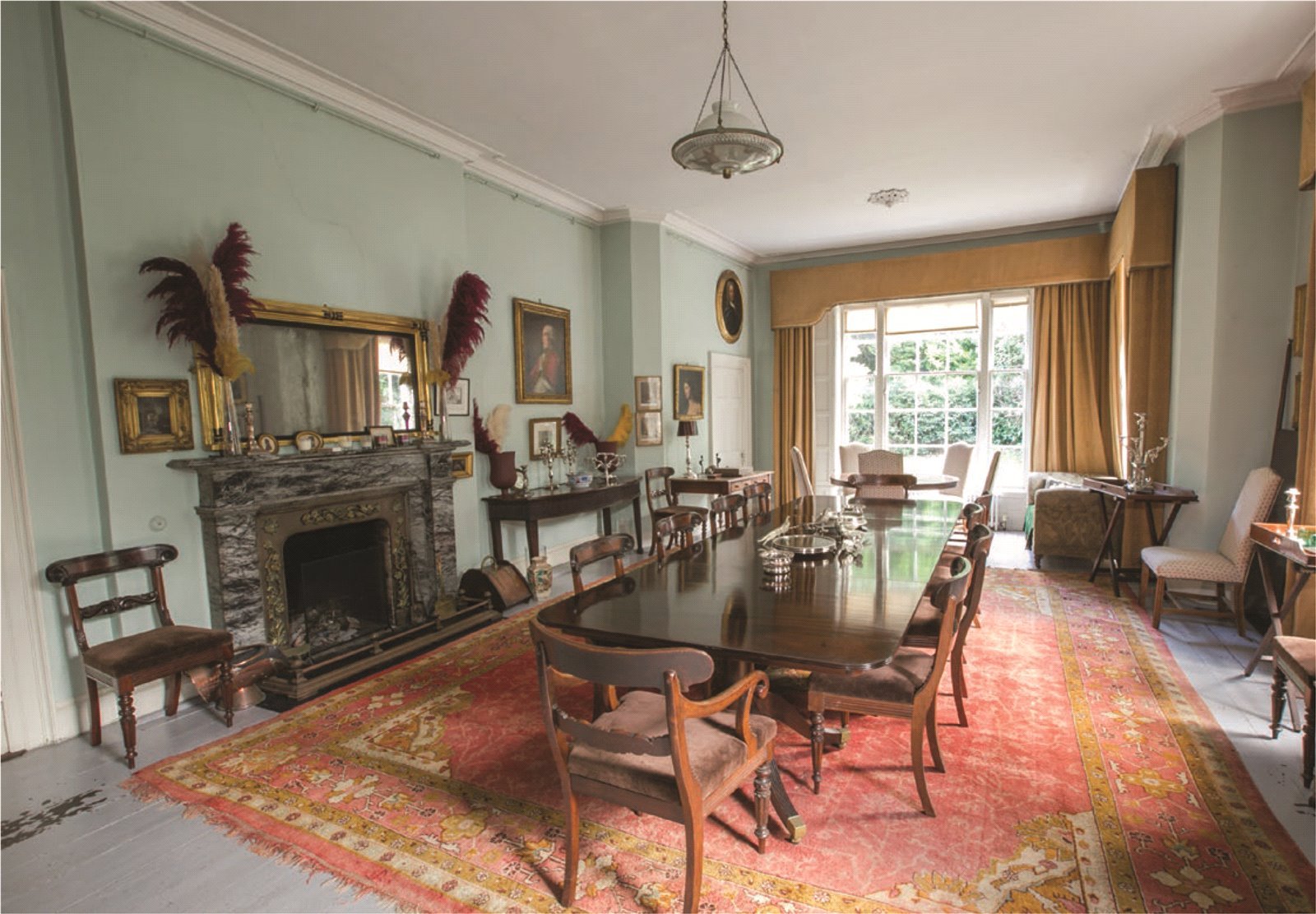 The accommodation of the main house and annex is laid out 3 storey over basement. On entering, one is immediately struck by the impressive hall and staircase which appears to reach to the top of the house. The hall has timber flooring, corniced ceiling and large centre rose, a sweeping staircase and there are doors to the dining room and library. The dining room features timber flooring, a large marble fireplace with decorative brass inset. There are 3 recessed sash windows with a wyatt window at the end of the room and shutters, corniced ceiling and two centre roses.