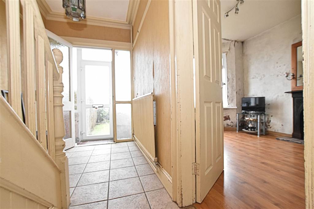 Hallway with under stairs storage, and room for a fridge freezer.