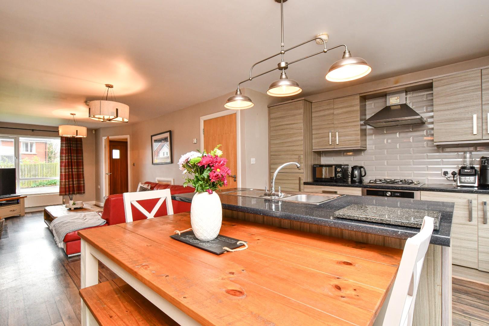 The heart of the home is a modern fitted kitchen that seamlessly integrates with an open plan living and dining area, creating an inviting atmosphere for both relaxation and entertaining. The layout is designed to maximise light and space, making it a warm and welcoming environment.
