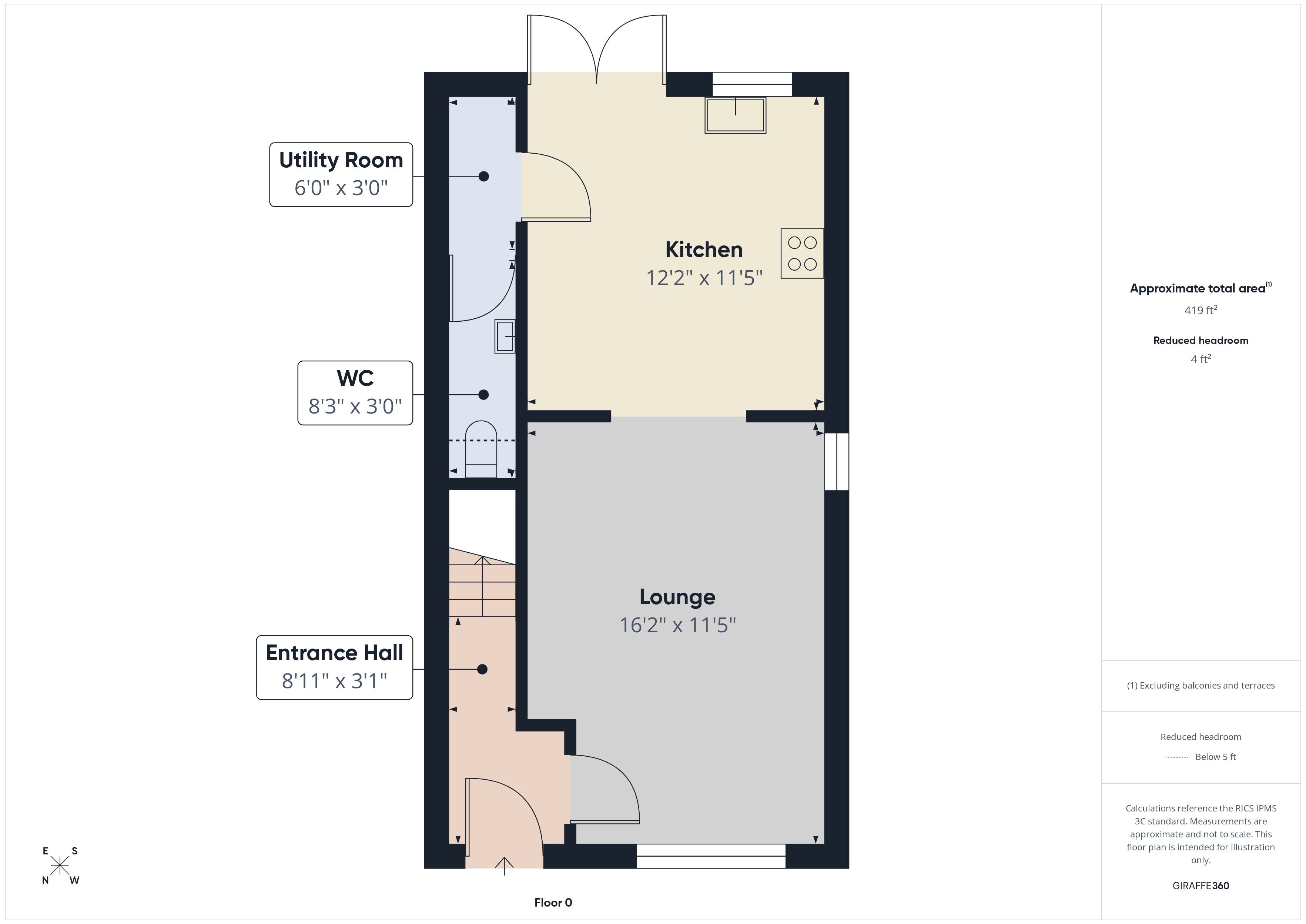 Utility Area 6'0" X 3'0" (1.83m X 0.91m)
