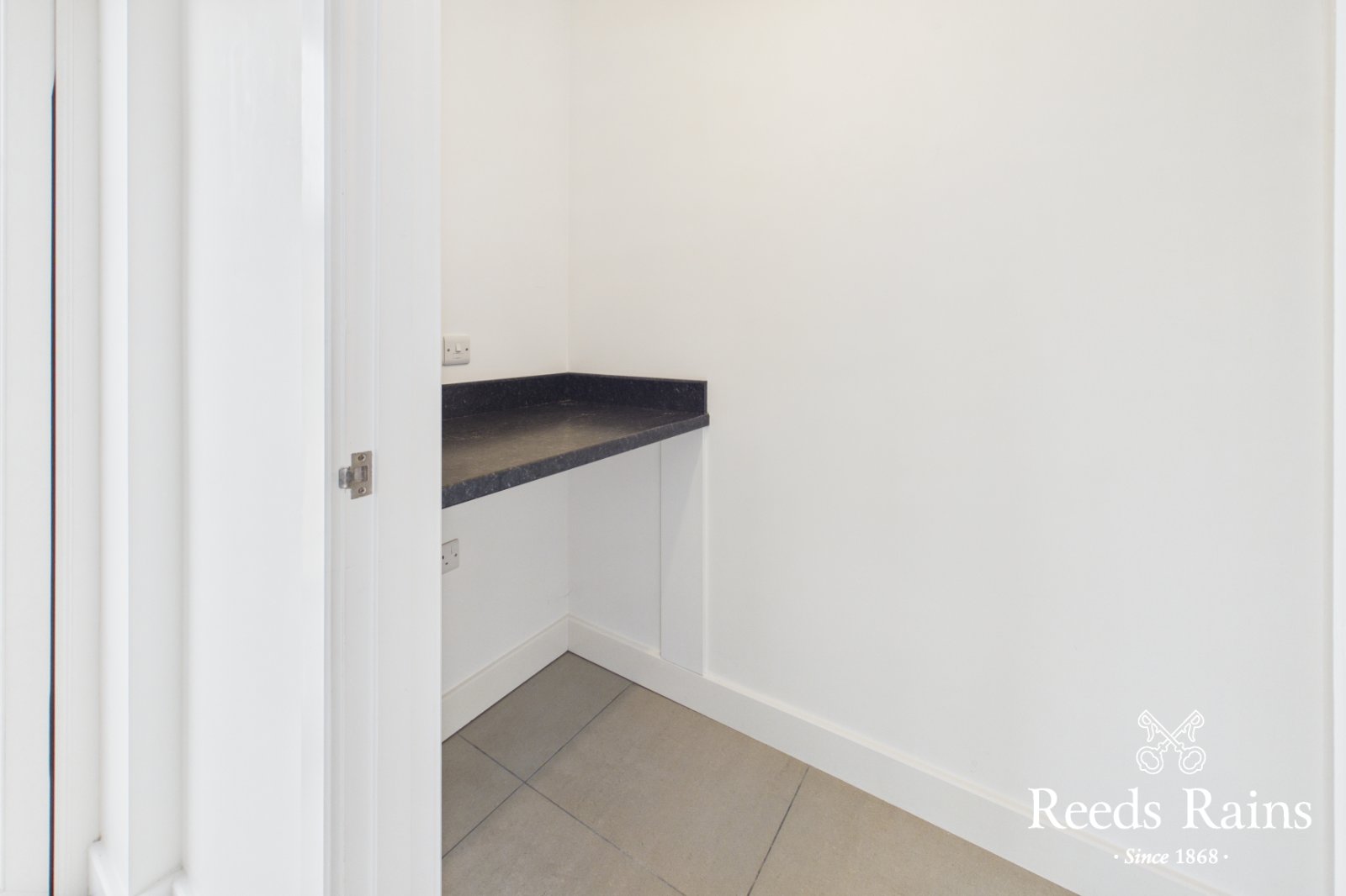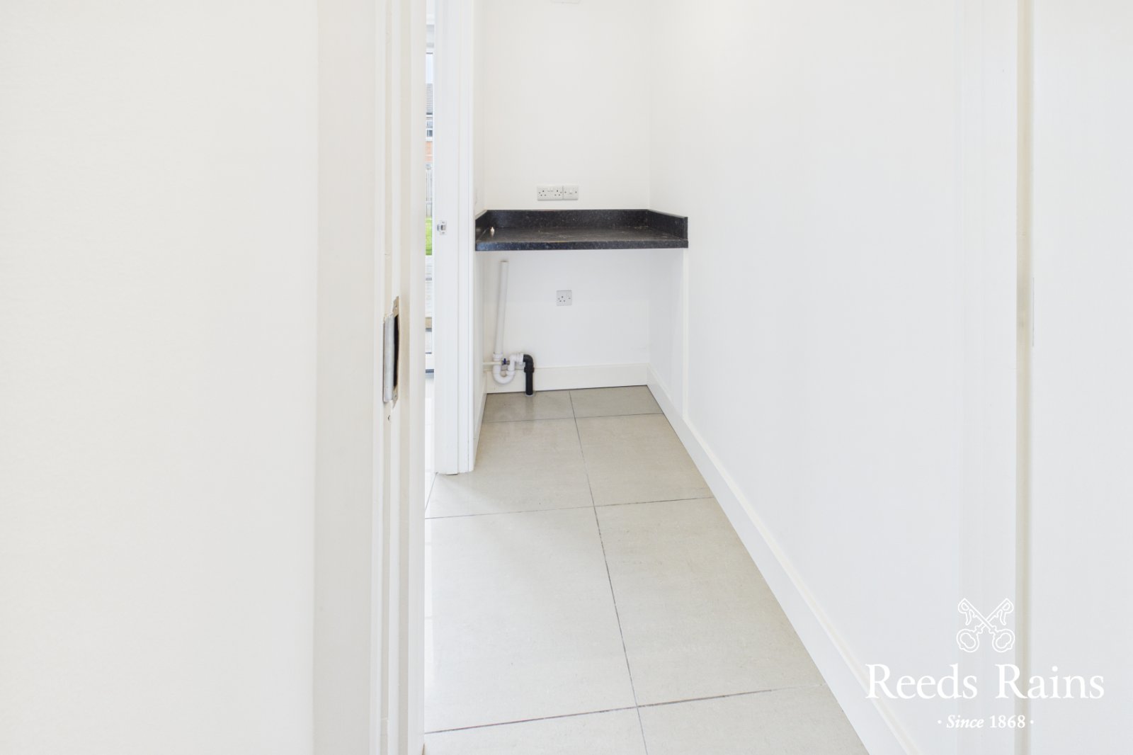 Ceramic tiled floor, plumbed for washing machine. Door to: cloaks.