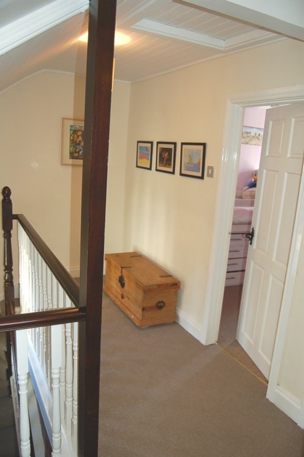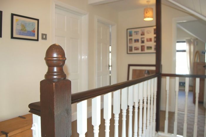 The kitchen is a great size and currently hosts a large kitchen table in the middle with the sun room opening up to one side with the utility room and downstairs shower room adjacent to the back door. The living room with its log burner and bare brick wall has real character and a useful study off. Upstairs the cottage theme continues with a spacious landing, lovely bathroom and four good sized bedrooms.