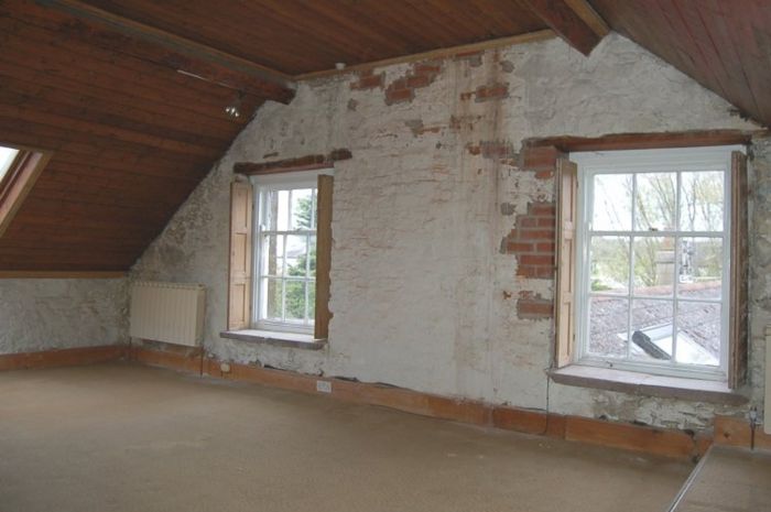 It is thought the original house was also extended during the Georgian Period to provide the coach entrance arch with large reception room over which has its own separate staircase and can be accessed from the archway. The Georgian features of the house are generally intact with original pine doors, architraves, pine sash windows, cornicing and some lime washed interior stone walls but the property is now in need of considerable sympathetic updating.