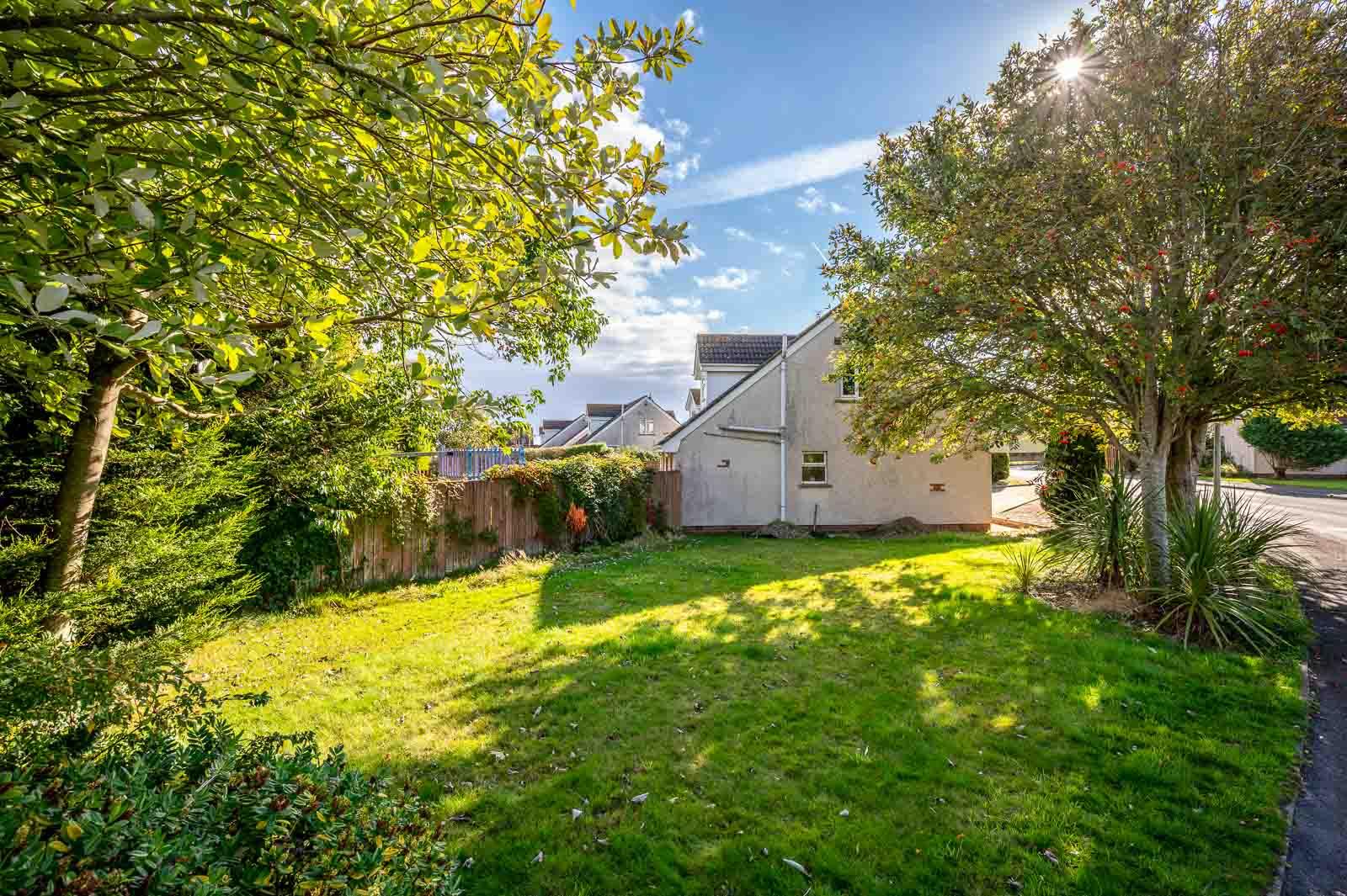 Outstanding fully enclosed rear garden in lawns with extensive paved patio barbecue area, additional terrace in attractive brick paviour, mature outlook, excellent degree of privacy, outside tap, uPVC oil tank, making this an ideal for children at play, outdoor entertaining or enjoying the sun, additional side garden in grass with trees.