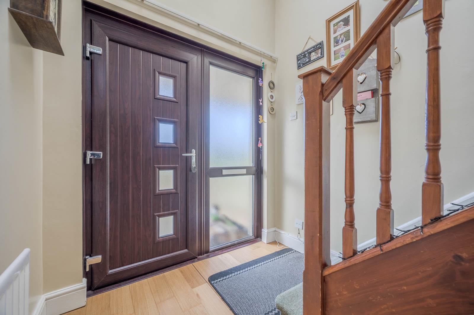 uPVC double glazed front door with uPVC double glazed side panel to reception hall.
