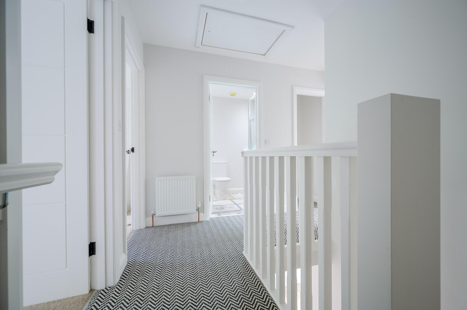 Access to roofspace, storage cupboard.