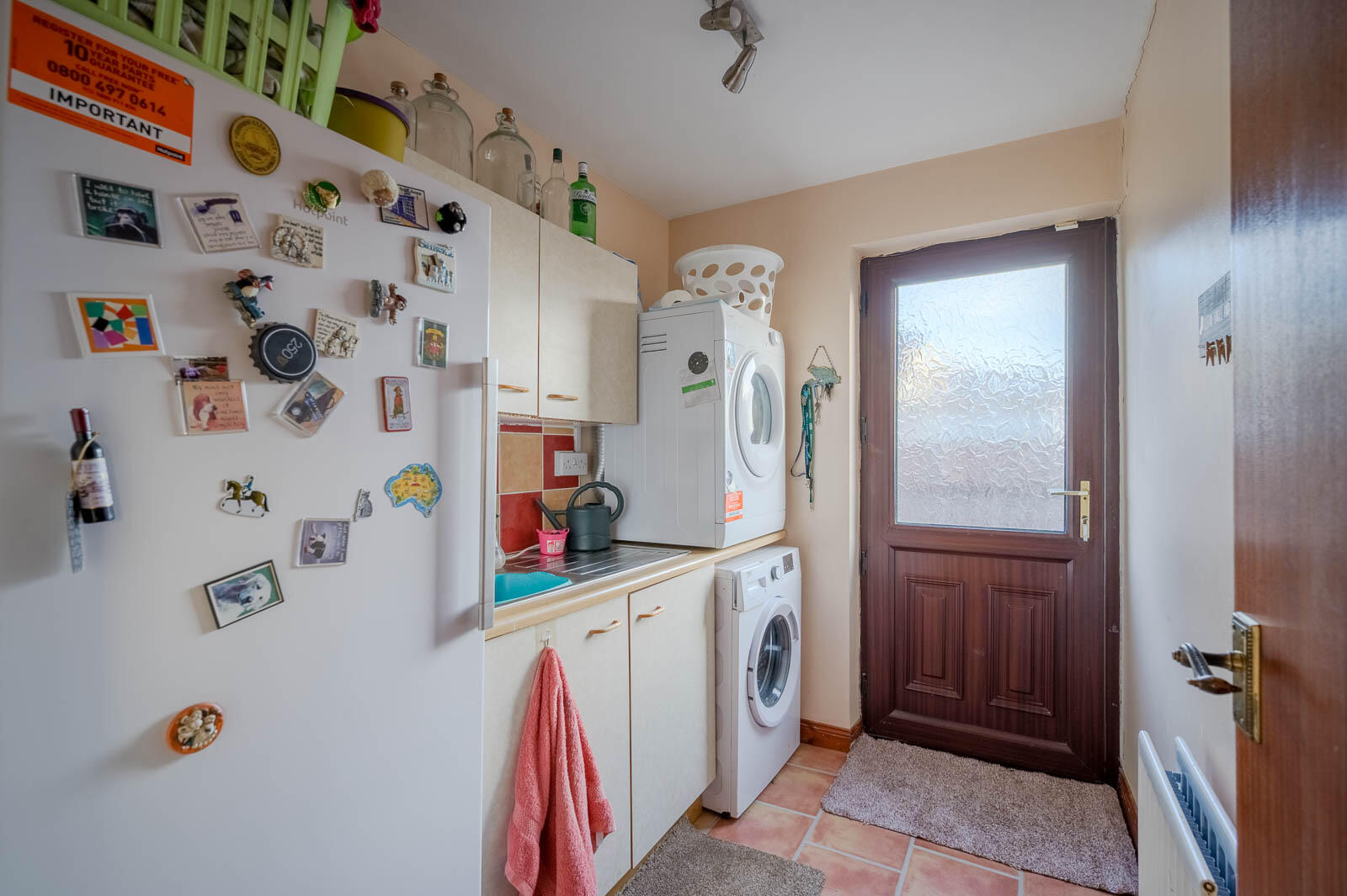 Outside does not disappoint either. There is a front garden in lawns, driveway in loose stones which provides ample parking for cars, caravans, boats and horse boxes, etc, an outstanding fully enclosed rear garden in lawns with extensive paved patio barbecue terrace, excellent degree of privacy and southerly aspect making it ideal for children at play, outdoor entertaining or enjoying the sun. You also have views to the Water Tower from the rear garden. Other benefits include oil fired central heating, uPVC double glazed windows, utility room and detached garage.