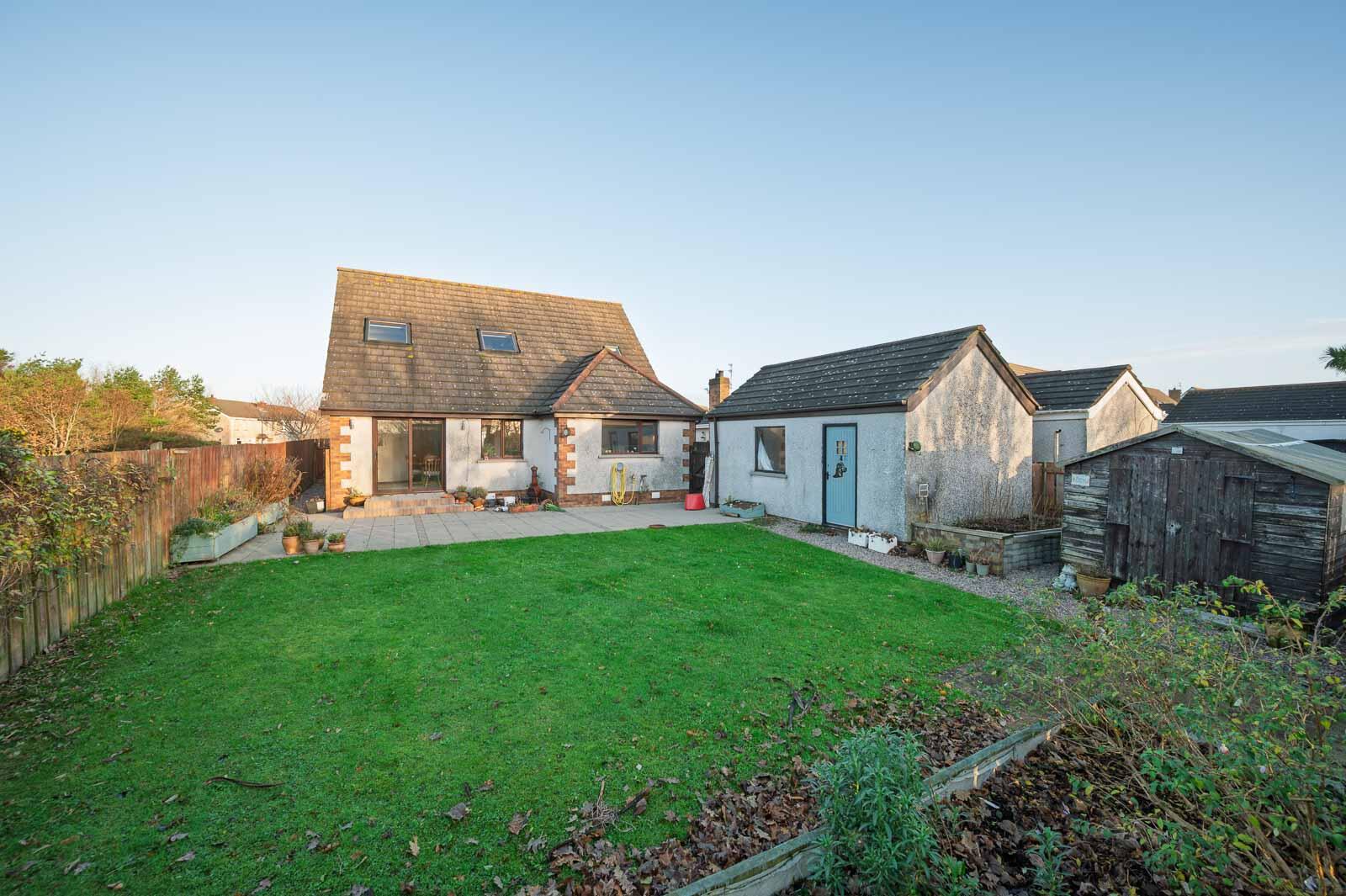 Front garden in lawns, driveway in loose stones with parking leading to detached garage, outstanding fully enclosed rear garden in lawns with extensive paved patio barbecue terrace, excellent degree of privacy and southerly aspect making it ideal for children at play, outdoor entertaining or enjoying the sun, views to the Water Tower.