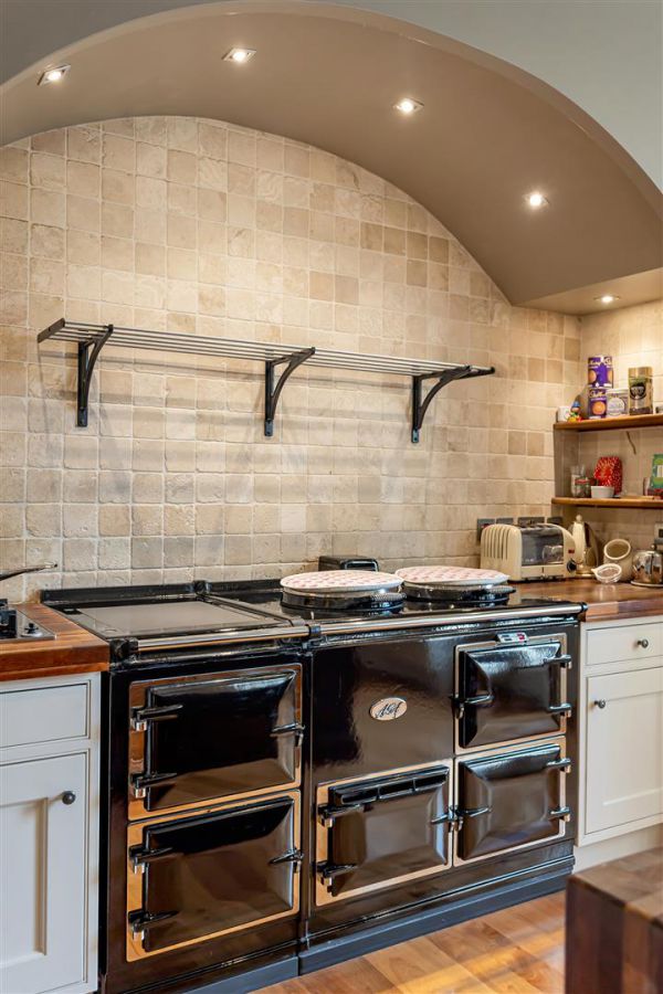 Fabulous Fitted Kitchen with Range of Hand Painted and Walnut Units, White Marble Worktops, Millennium Edition Four Aga Oven, Range of Integrated Appliances, Waste Disposal Unit,