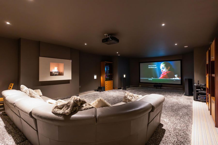 Large Cinema Room with Second Media Station, Remote Access to Sound System, Full Surround Sound, 3D Projector, Feature Raised Gas Fire with Limestone Surround and Mood Lighting