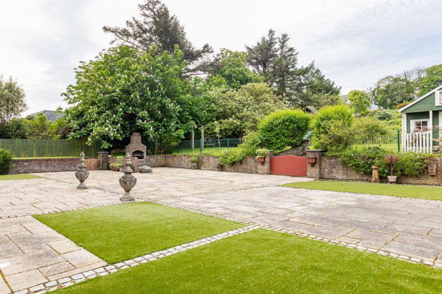 Front garden in lawns with plants and shrubs, extensive tarmac driveway with granite kerb stones and bay area with hot and cold water, ideal for washing cars, leading to integral garage, fully enclosed rear garden with lawns, extensive stone paved terrace area and artificial lawn areas allowing for that all important low maintenance aspect, brick built-in barbecue, outside lighting, solid double wooden vehicular entrance doors. Rear garden has a southerly aspect making an ideal space for children at play, outdoor entertaining or enjoying the sun. There is a garden store to the side and an oil tank store. There is also hot and cold water to the side.