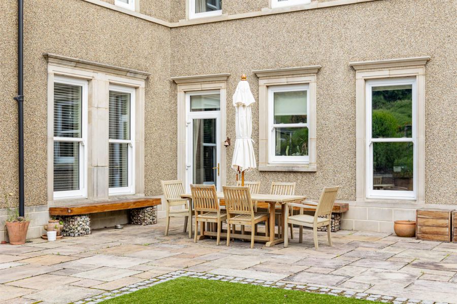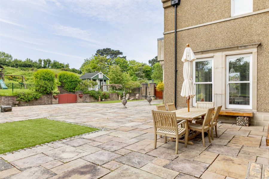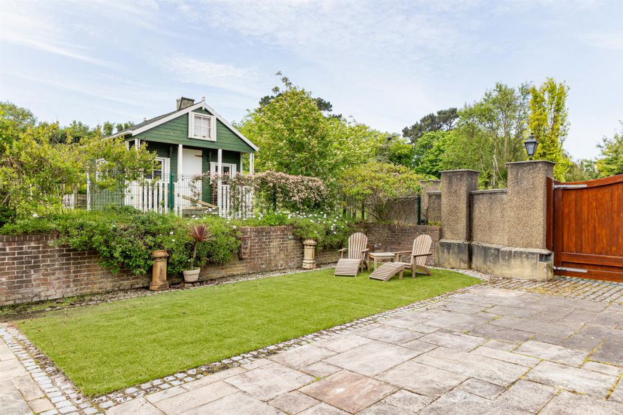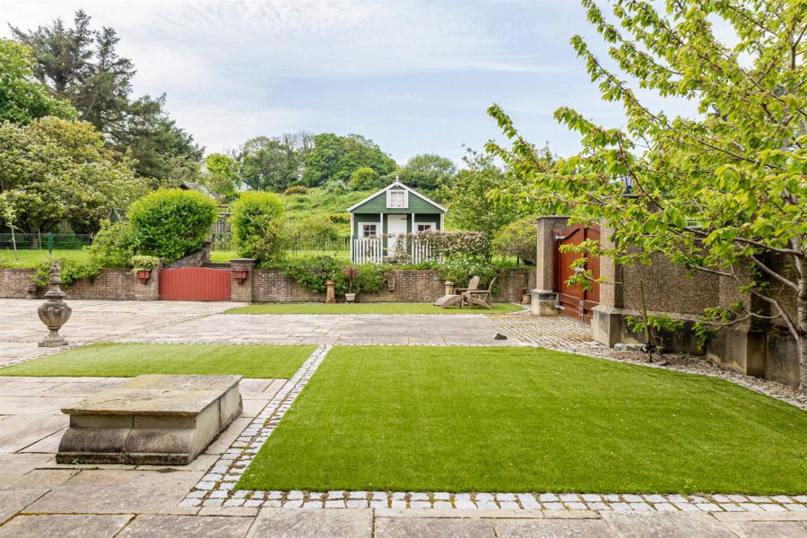 To the rear is a fully enclosed walled garden with Indian sandstone, ground and wall lighting and brick built barbecue. Steps to the side and centre lead to a further garden in lawns. The rear garden has a southerly aspect making an ideal space for children at play, outdoor entertaining or enjoying the sun.