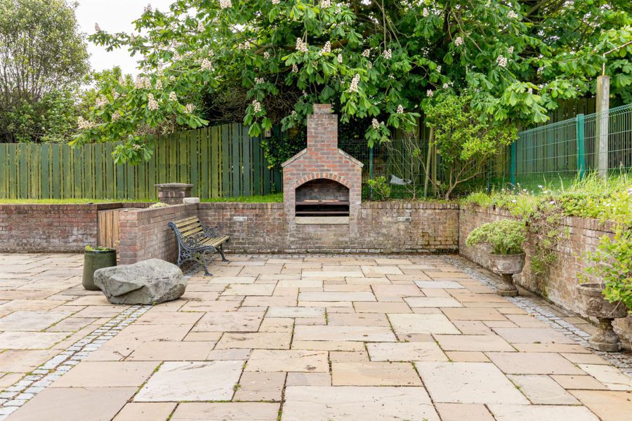 Fully Enclosed Walled Garden with Indian Sandstone, Ground Lighting, Wall Lighting, Brick Built Barbecue and Speakers from the Media System