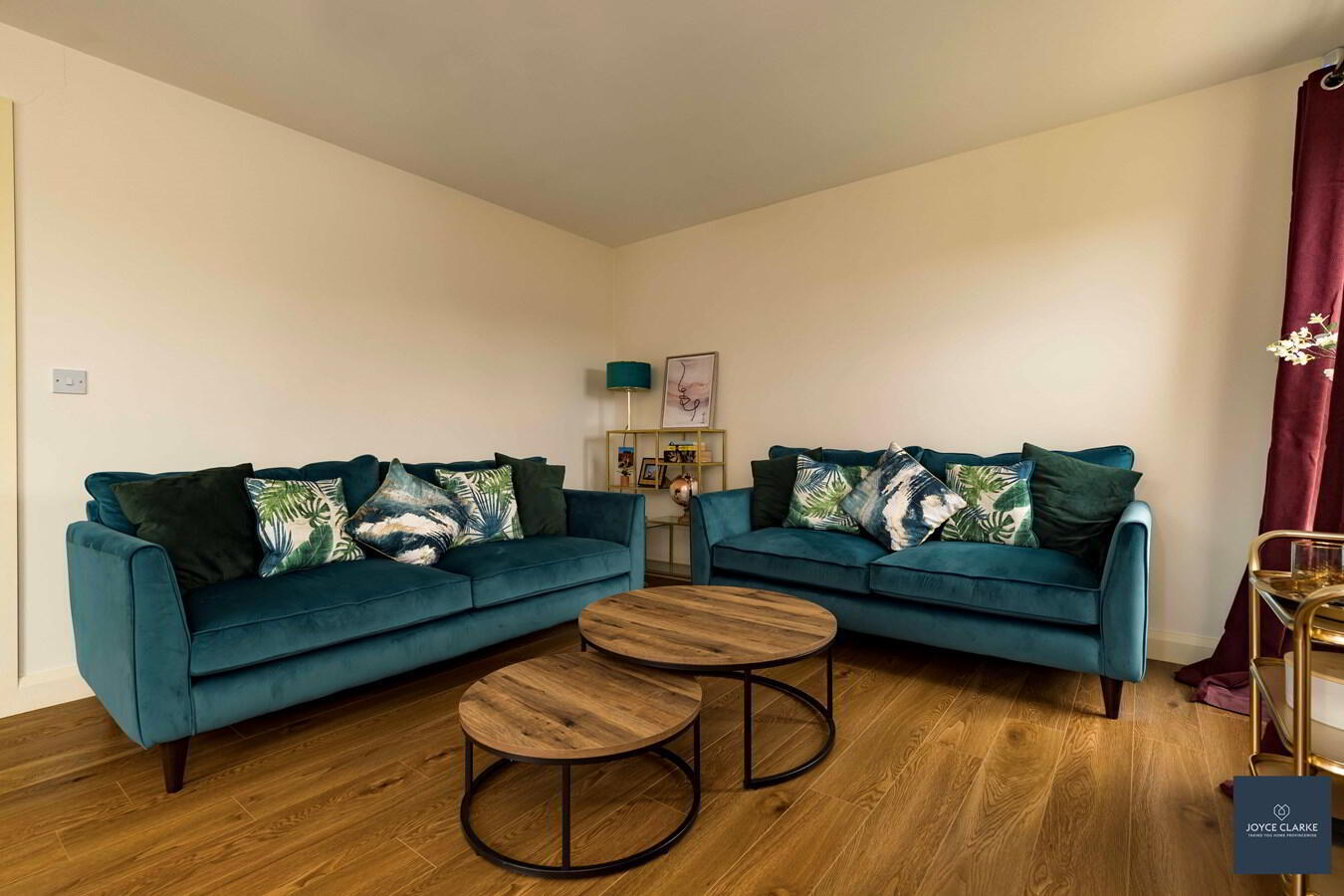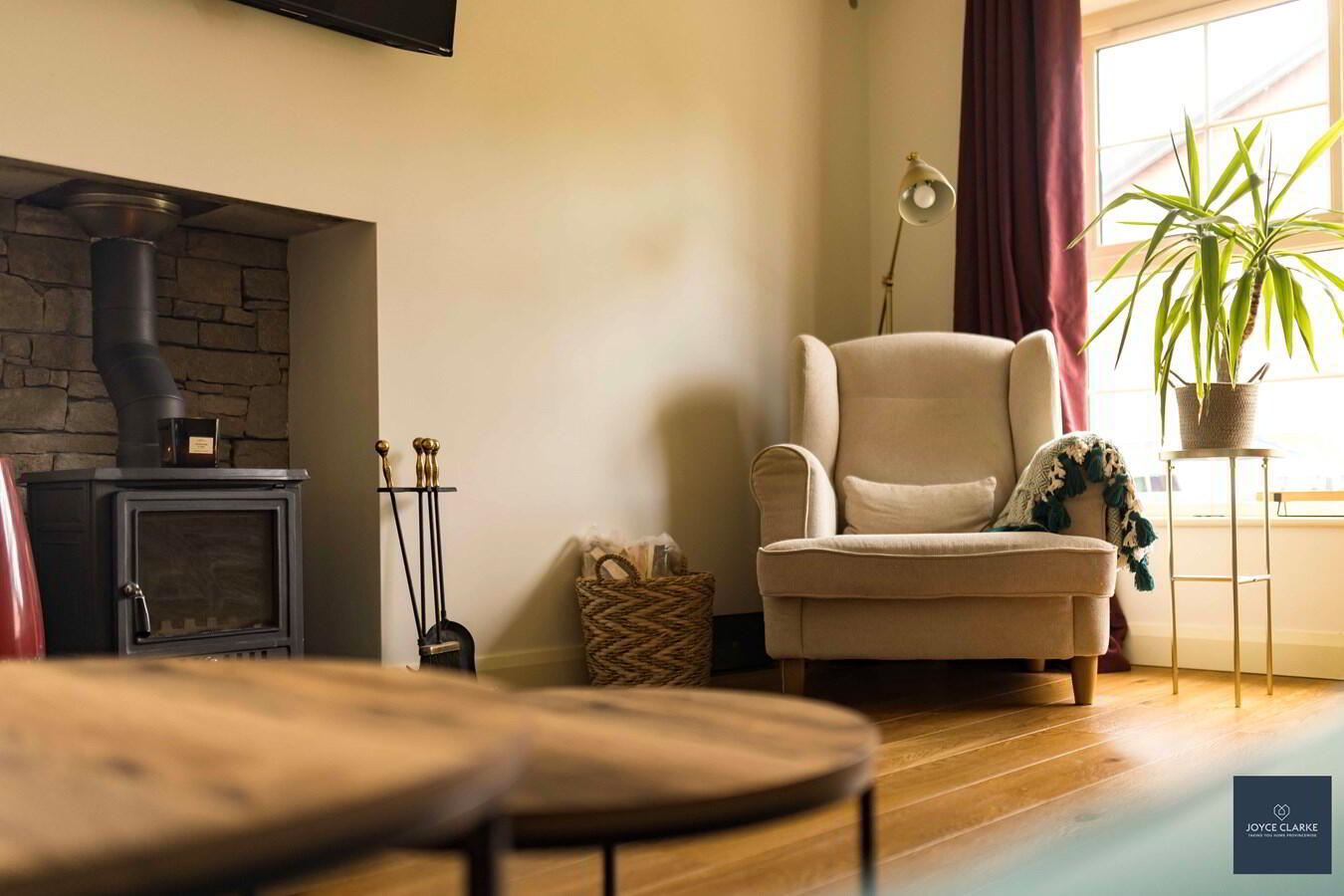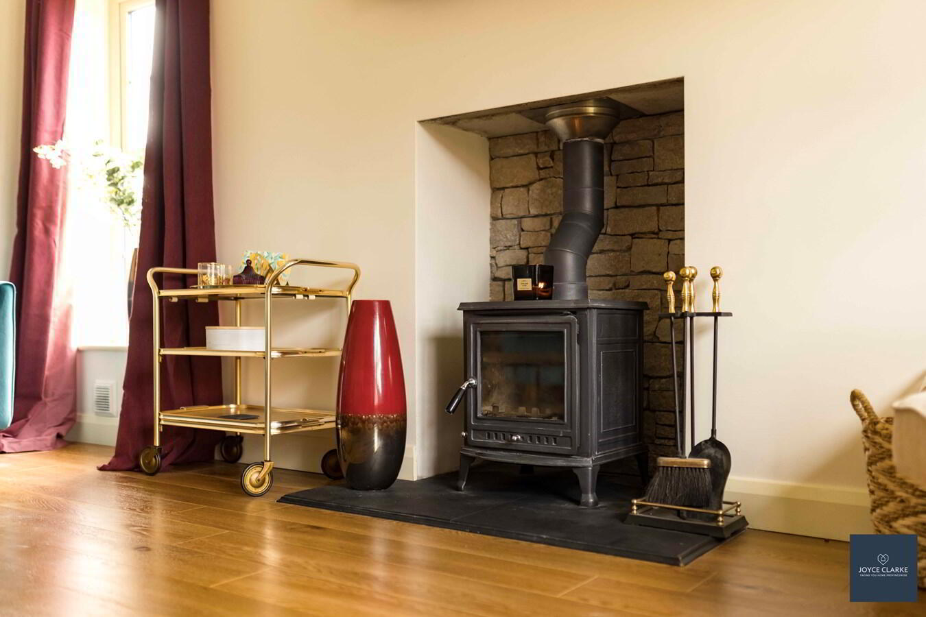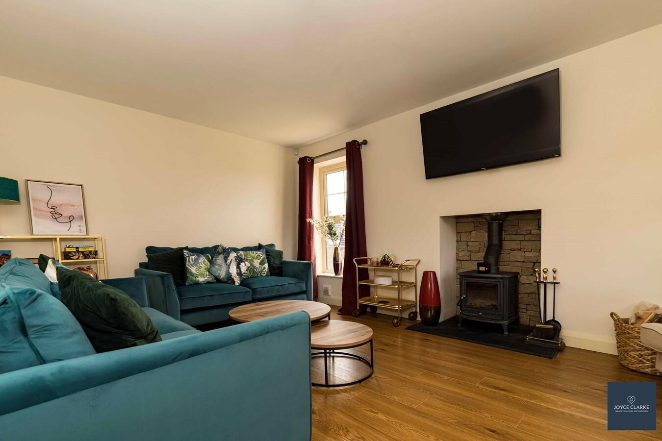 Dual aspect reception room. Feature fireplace with multi-fuel stove and stone clad chamber. Laminate wooden flooring. Double panel radiator.