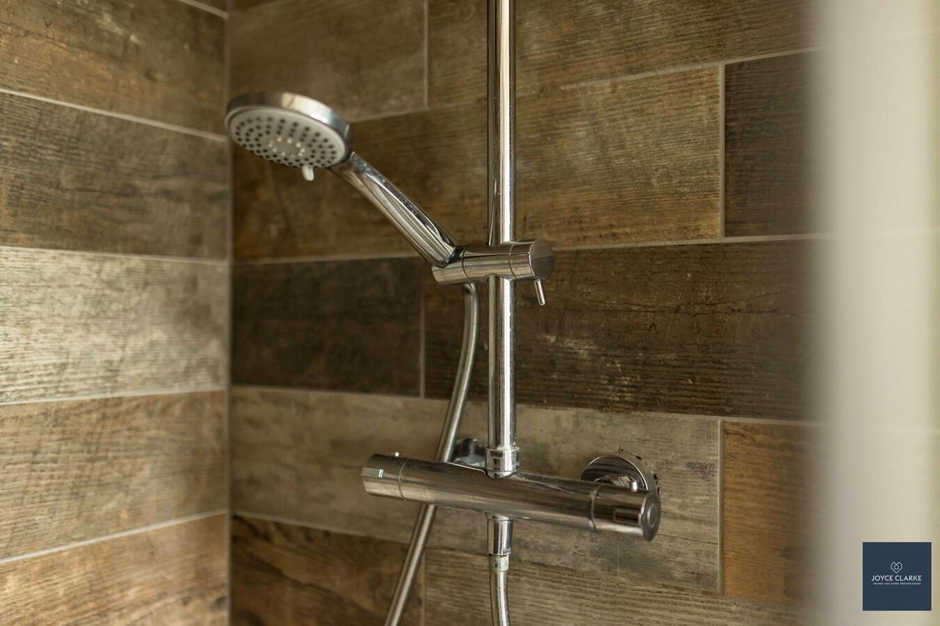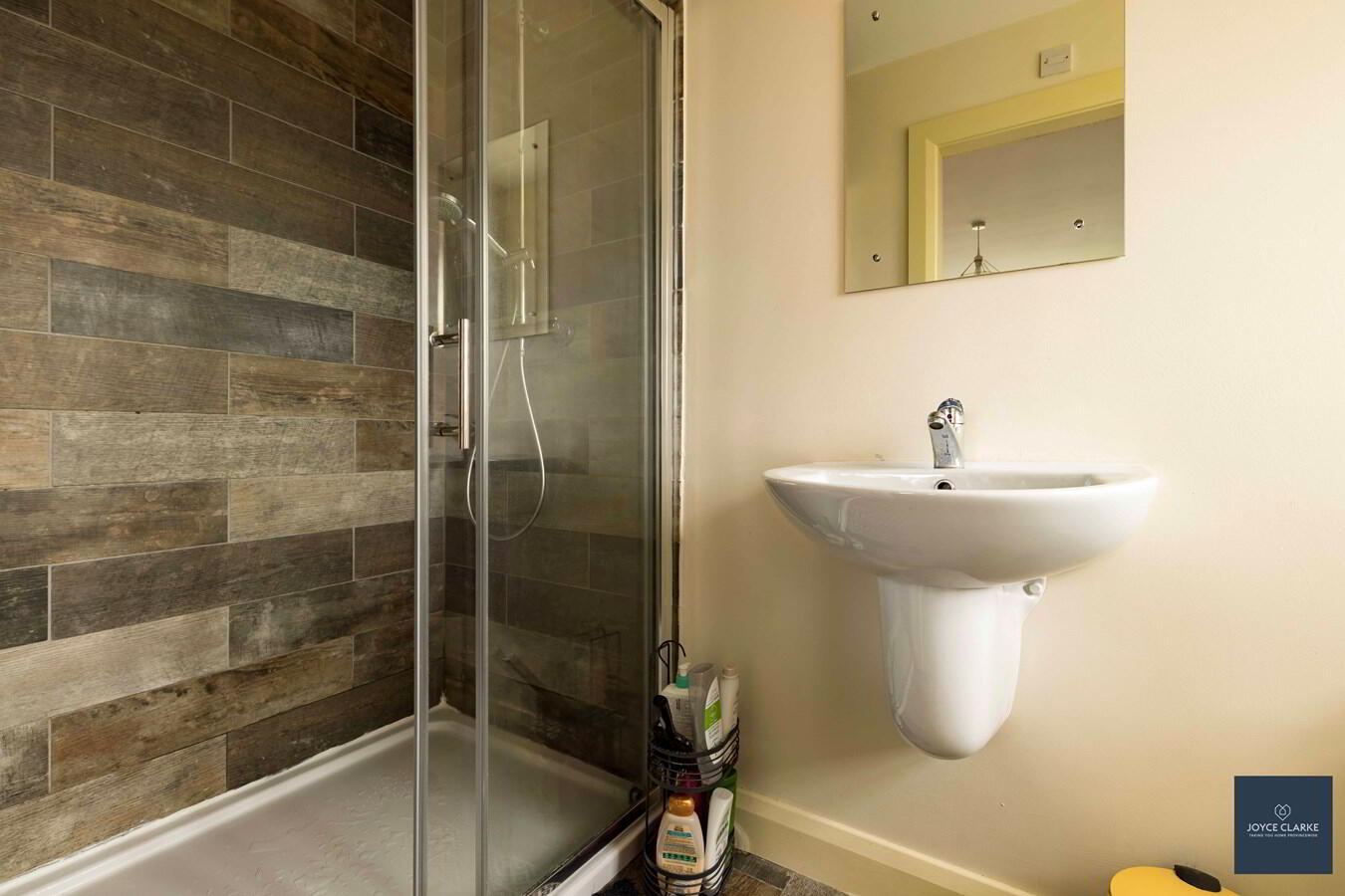 Three piece bathroom suite comprising of walk-in shower enclosure with waterfall shower head, floating sink and dual flush WC. Double panel radiator. Extractor fan. Window.