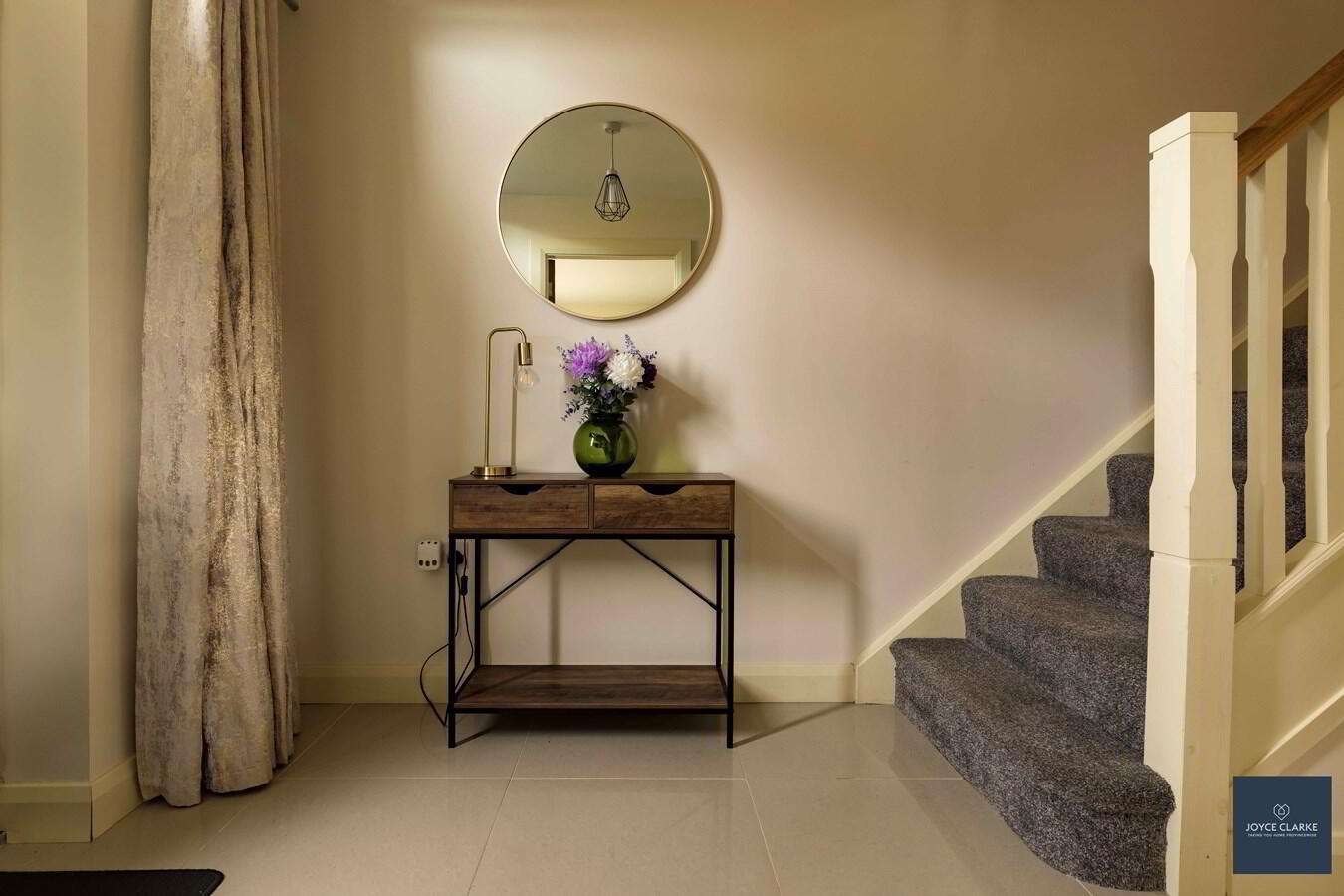 ENTRANCEComposite entrance door with glazed panel. Tiled flooring. Double panel radiator. Understairs storage area.