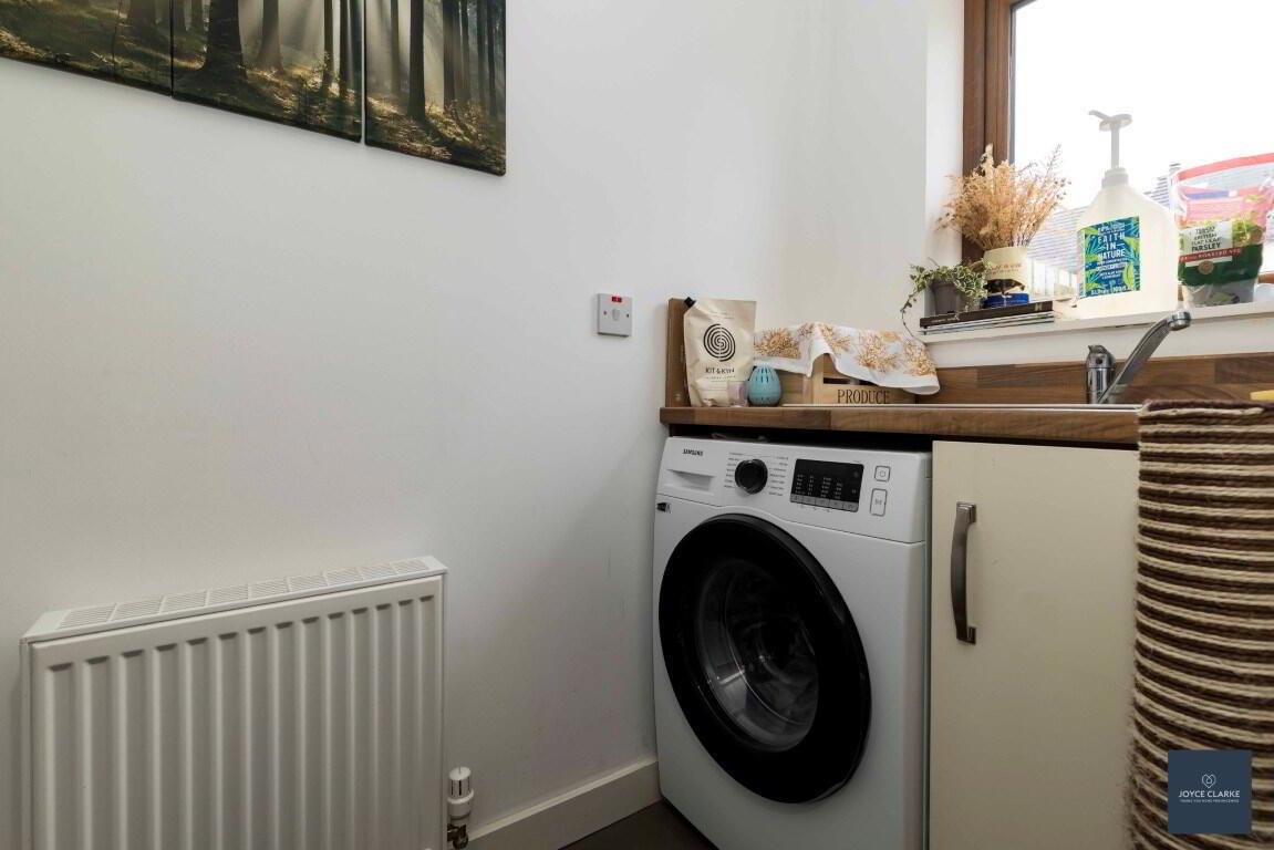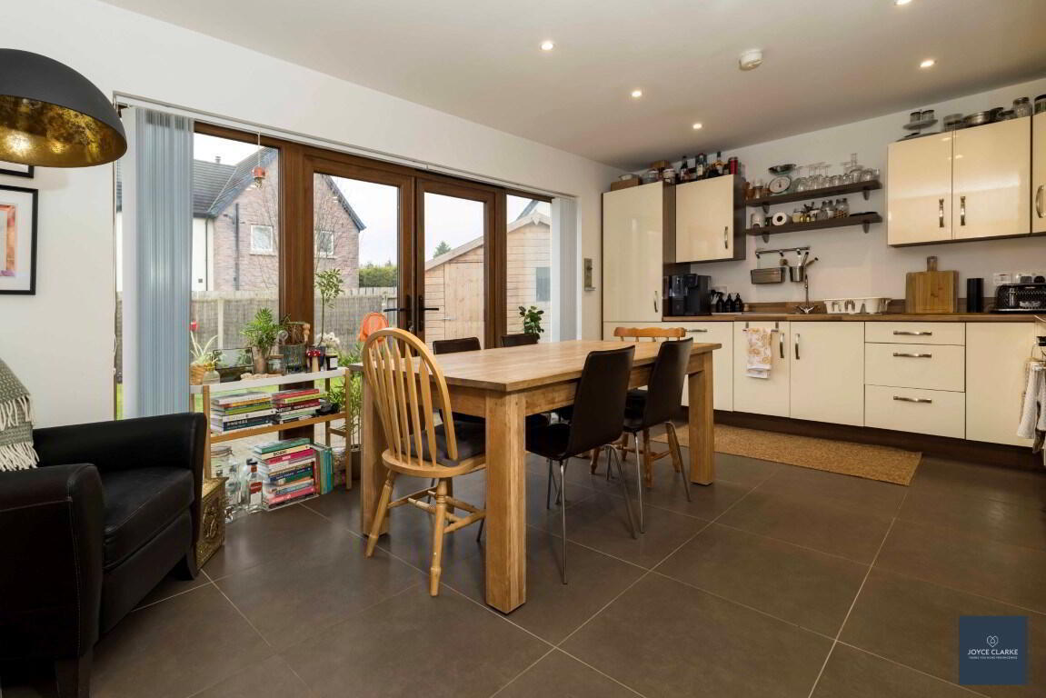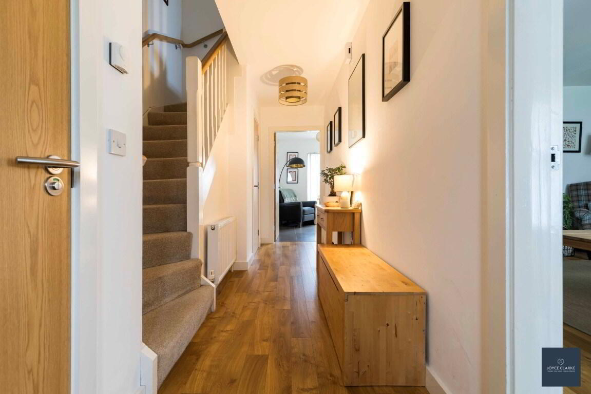 4 Nicholson Green is sure to impress, with tasteful décor throughout this spacious home and fantastic natural light throughout. Relax in the dual aspect living room with multi fuel stove and stunning bespoke book case. The open plan kitchen dinning has a super range of storage cupboards and integrated appliances with double patio doors bringing you to the garden. A utility room and downstairs WC complete the ground floor. As you head upstairs you are met with a large landing leading into four well proportioned bedrooms, the master with en suite. The family bathroom is modern with waterfall dual shower over the bath. This home will also impress on the outside, with a fully enclosed garden to the rear, laid in lawn with a paved patio ideal for entertaining. There is also a tarmac driveway to the side of the house with space for multiple vehicles parking. An added bonus is that school, shops and amenities are all within easy walking distance of this beautiful home. We recommend early viewing as this home will be snapped up!