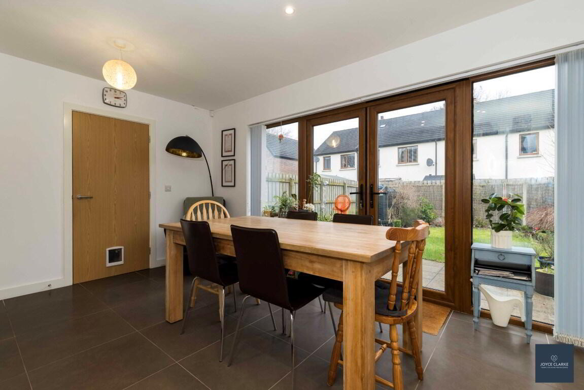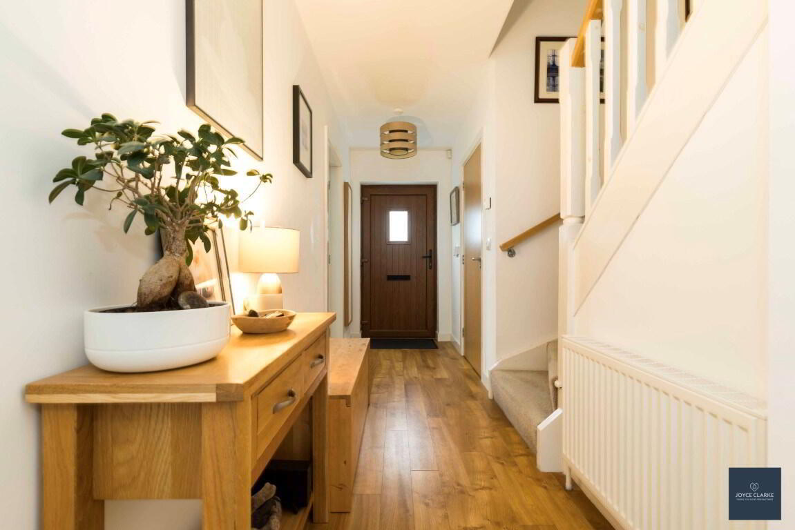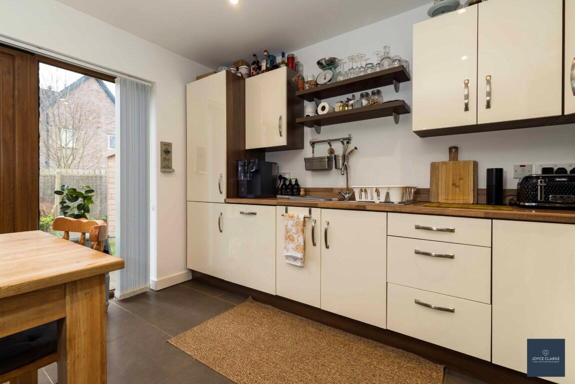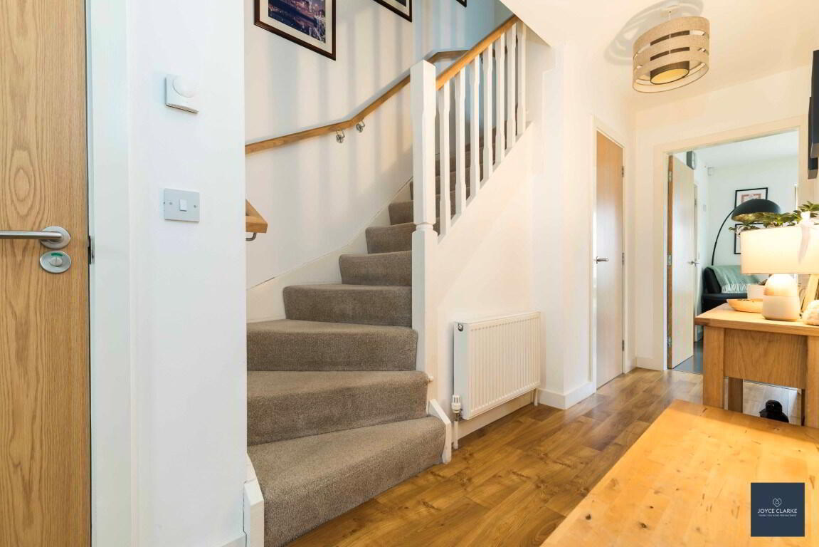 4 Nicholson Green is sure to impress, with tasteful décor throughout this spacious home and fantastic natural light throughout. Relax in the dual aspect living room with multi fuel stove and stunning bespoke book case. The open plan kitchen dinning has a super range of storage cupboards and integrated appliances with double patio doors bringing you to the garden. A utility room and downstairs WC complete the ground floor. As you head upstairs you are met with a large landing leading into four well proportioned bedrooms, the master with en suite. The family bathroom is modern with waterfall dual shower over the bath. This home will also impress on the outside, with a fully enclosed garden to the rear, laid in lawn with a paved patio ideal for entertaining. There is also a tarmac driveway to the side of the house with space for multiple vehicles parking. An added bonus is that school, shops and amenities are all within easy walking distance of this beautiful home. We recommend early viewing as this home will be snapped up!