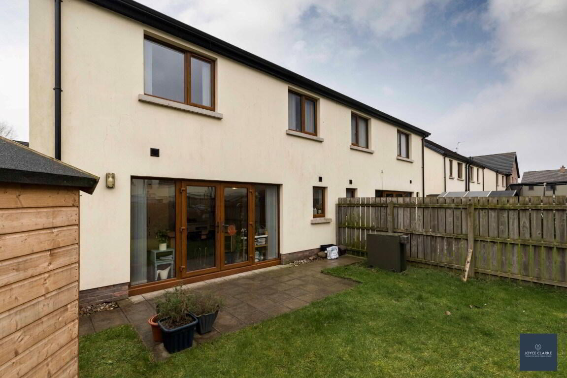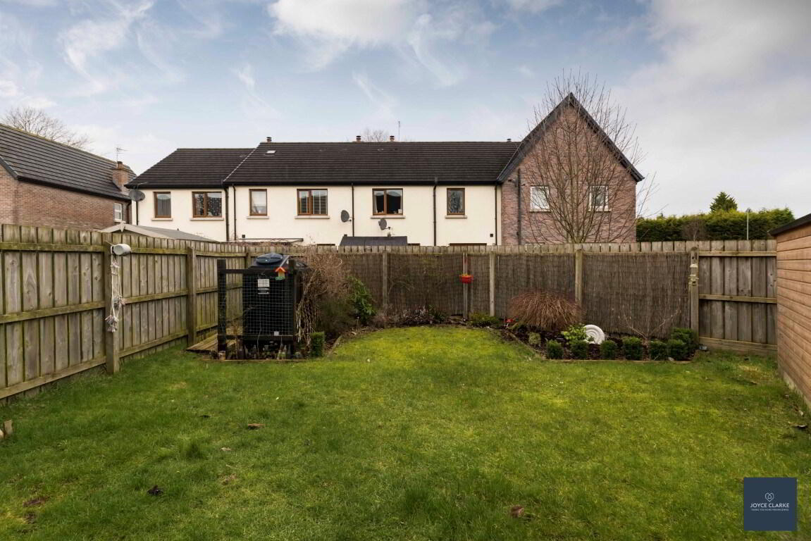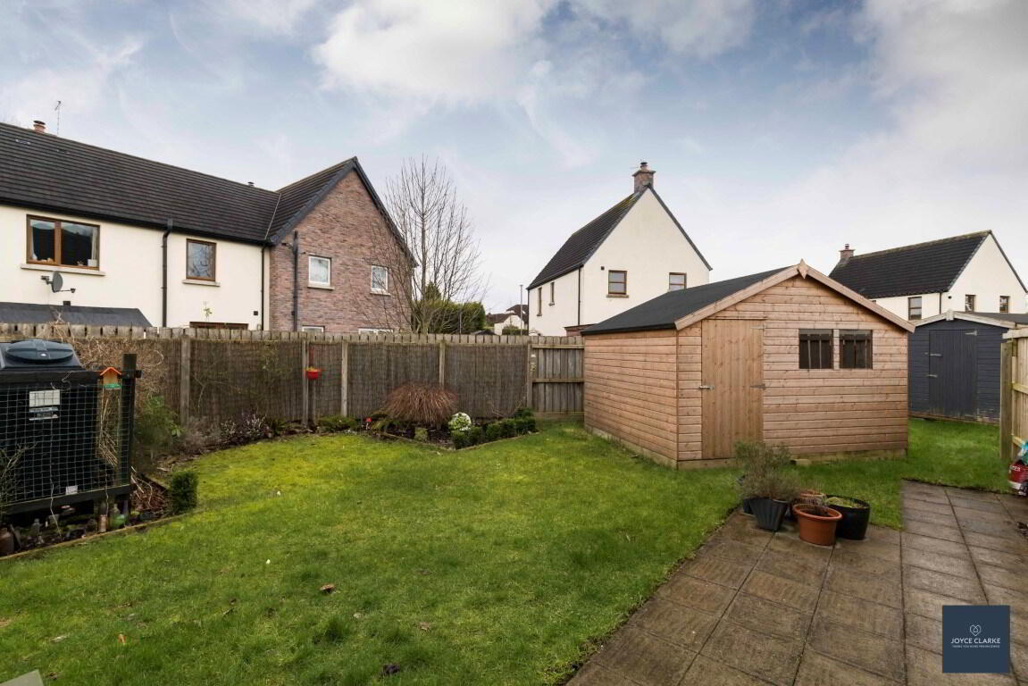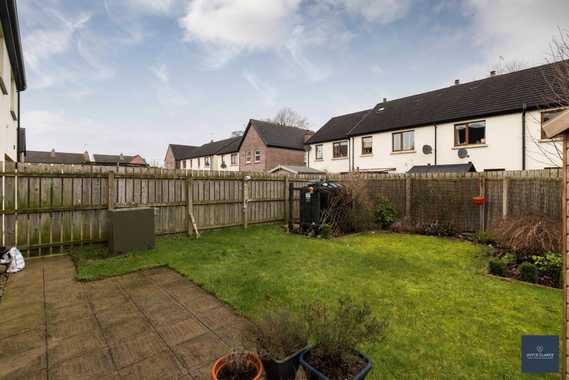 Fully enclosed rear garden, laid in lawn with mature shrubs. Paved patio area. Garden sheds. Outside tap. Wired for electric car charger. Tarmac driveway.