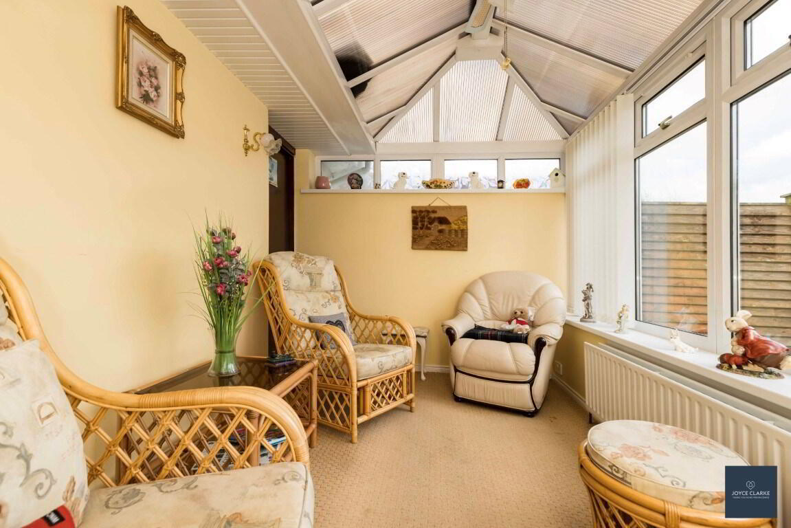 Rear aspect reception room with views over rear garden. Double panel radiator. UPVC patio door with glazed panel leading to rear garden. Access to garage.