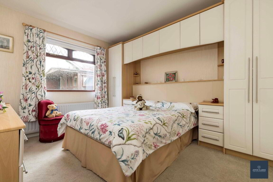 Rear aspect double bedroom with range of fitted bedroom furniture including, wardrobes, cupboards and bedside cabinets. Dressing table and set of drawers. Double panel radiator.