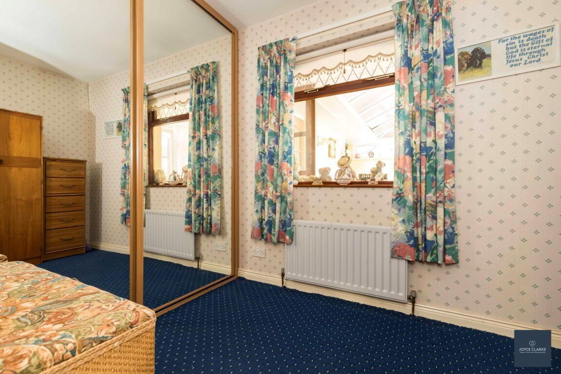 Side aspect bedroom. Fitted double mirrored door slide wardrobe with range of clothes rails and shelving. Single panel radiator.