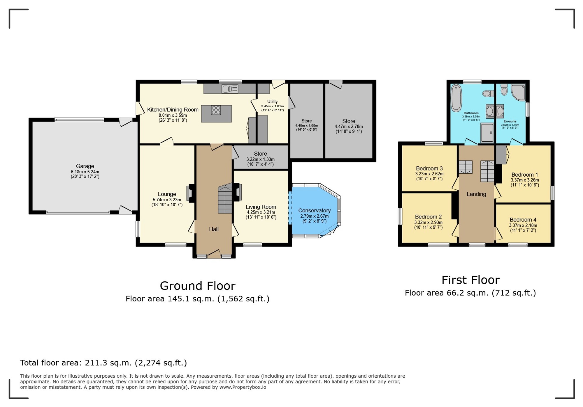 Accommodation comprises: Covered Entrance Porch, Entrance Hall, Sitting Room, Living Room, uPVC Conservatory, Kitchen/Dining area, Utility Room, Store Room, Half Landing, Bathroom, Upper Landing, 4 Bedrooms (master ensuite).