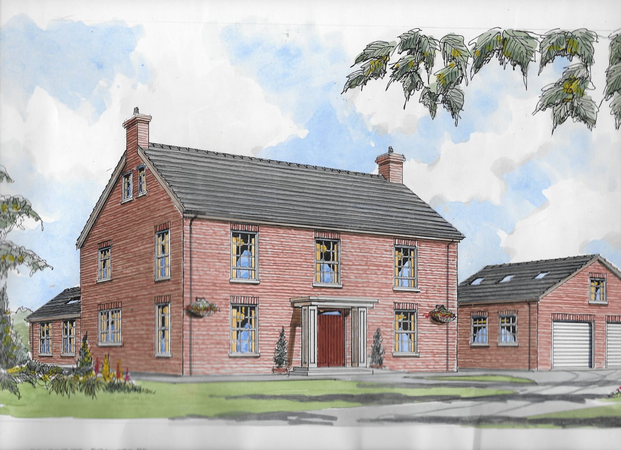 This site is approximately 0.8 acre in size and has full-planning approval for a detached family home with double storey garage block and a further detached office/ workshop (please see the enclosed floorplans). Plans have been drawn and approved for a substantial redbrick family home and offer two options on the build of the house, it can either be finished as a two storey or a three storey detached family home.