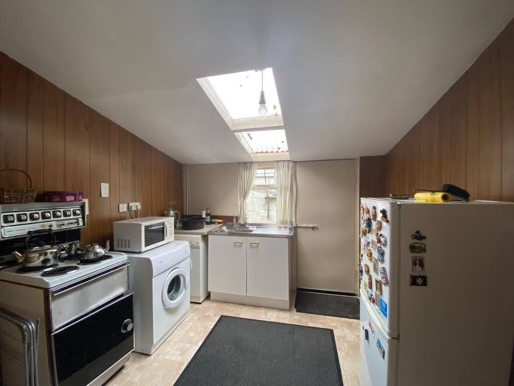 Having sink unit, wired for cooker, plumbed for washing machine.