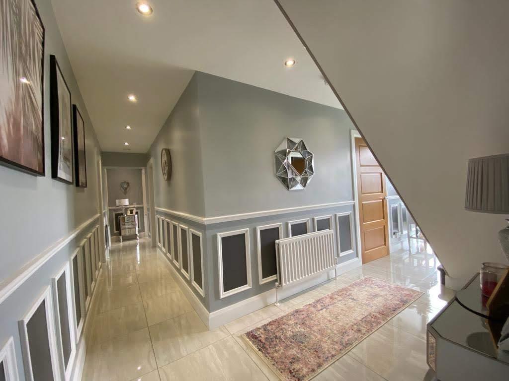 Having cloaks cupboard, panelled walls, recessed lighting, tiled floor.