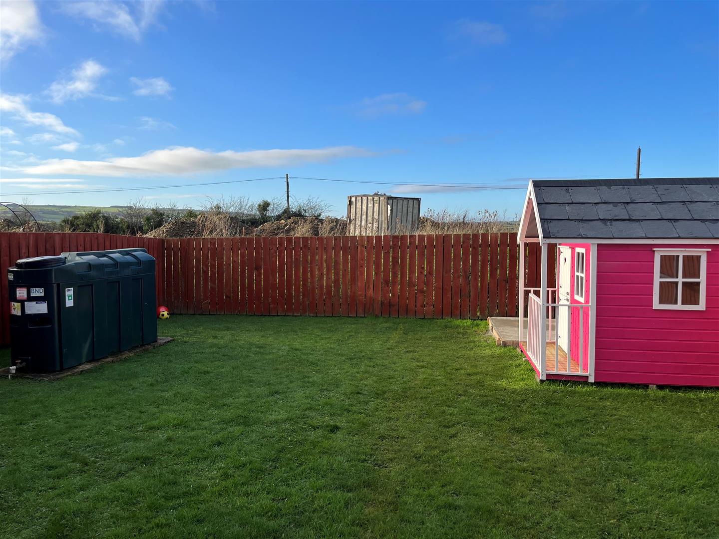 Net lawn to side and rear bordered by fence.
