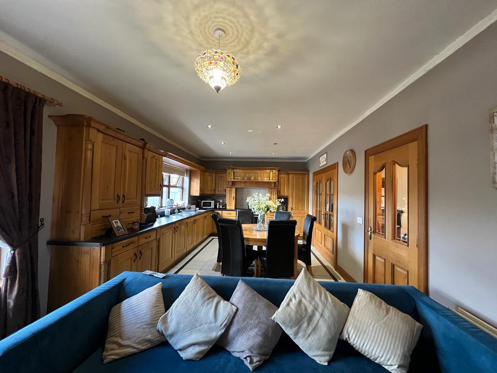 Having excellent range of eye and low level units, tiling between units, single drainer stainless steel sink unit with mixer taps, Belling cooking centre, gas hob, electric oven, matching overmantle with extractor fan, integrated fridge/freezer and dishwasher, ample dining space, tiled floor.