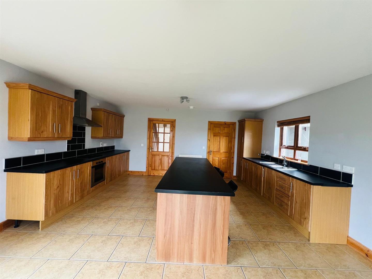 Having range of eye and low level units, single drainer stainless steel sink unit with mixer taps, hob, underoven, stainless steel extractor hood, integrated fridge / freezer and dishwasher, centre island with breakfast bar and storage under, wine rackm ample dining space with French doors leading to rear, tiled floor.