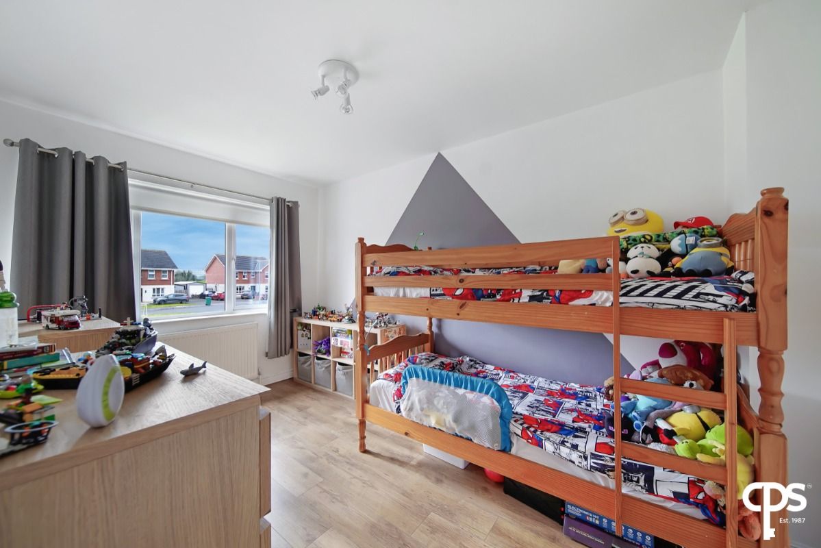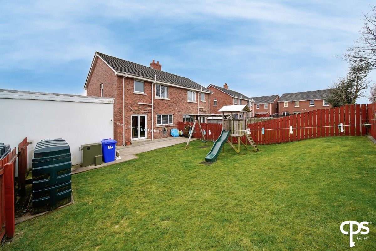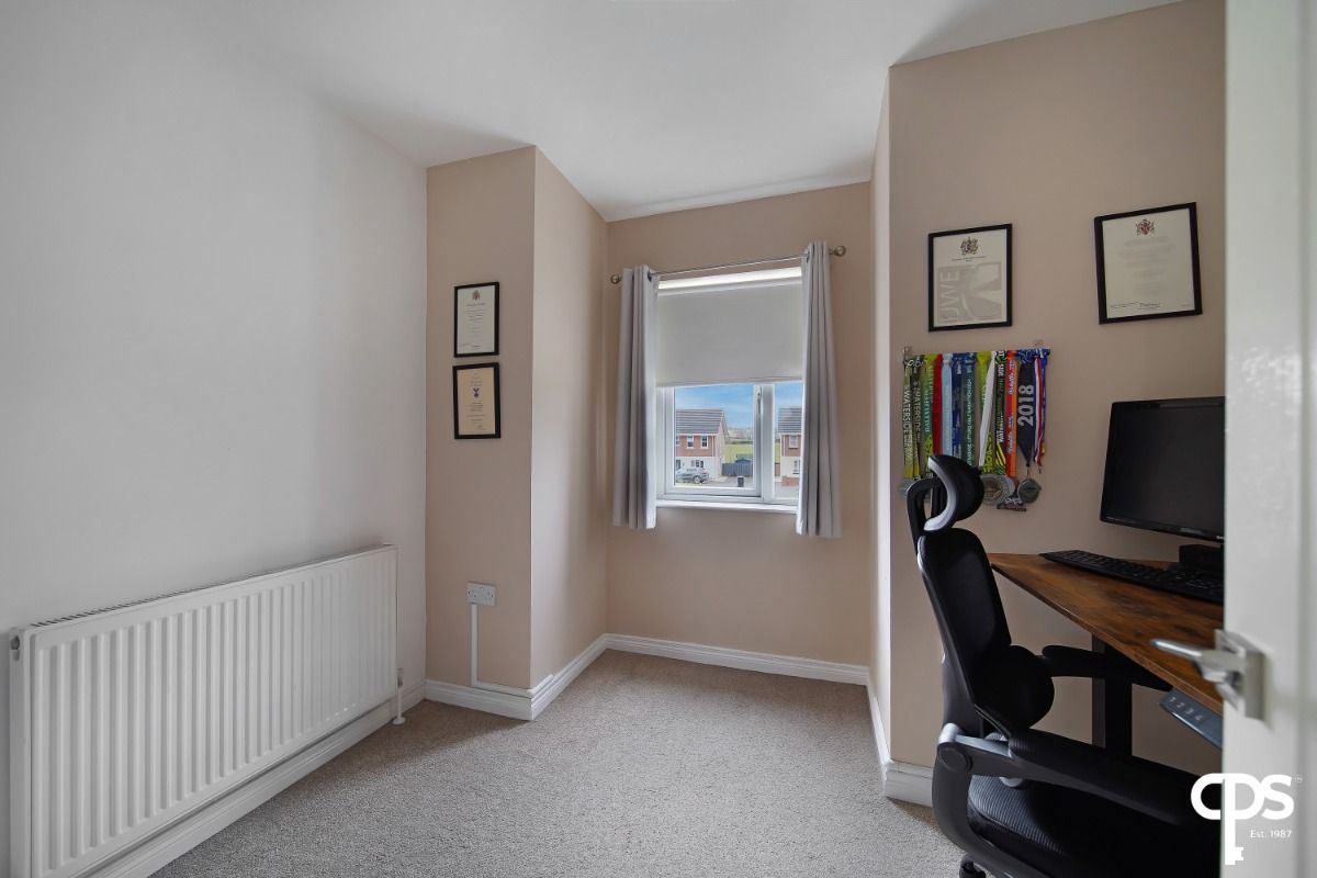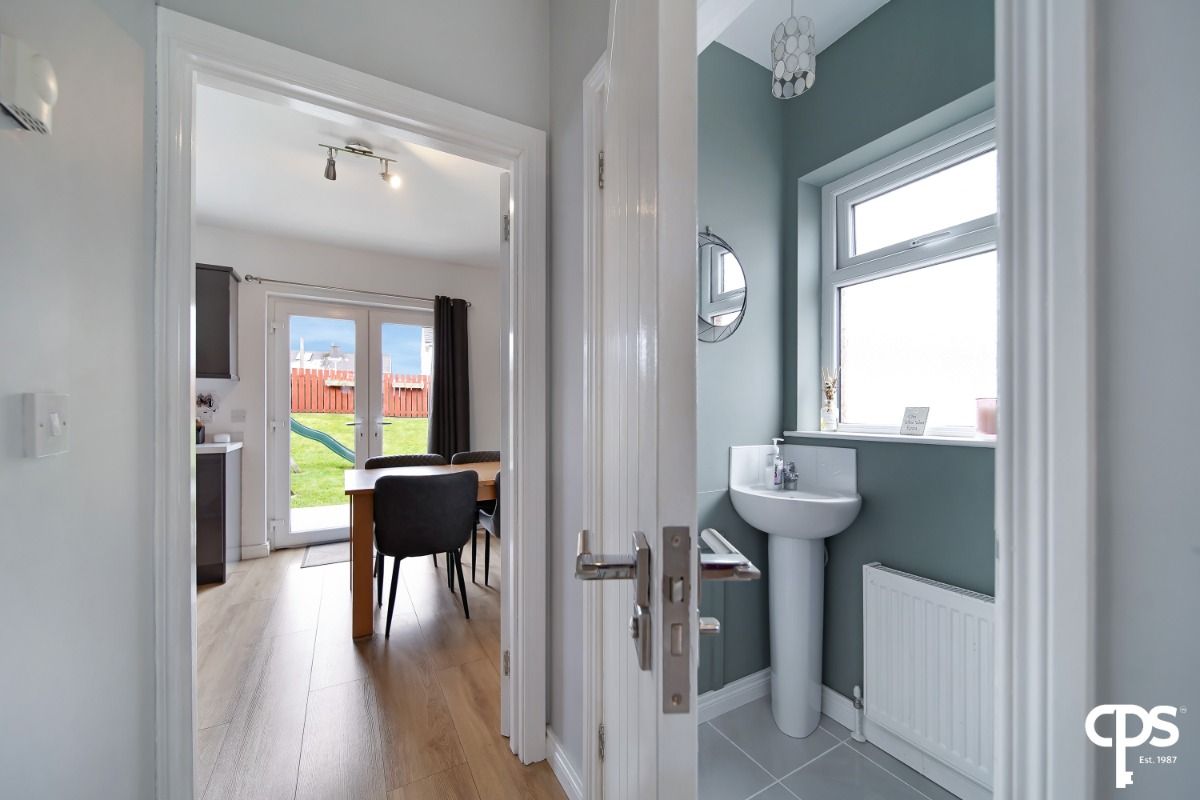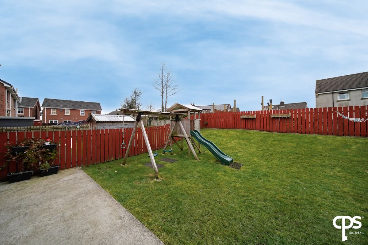 - Enclosed rear garden laid primarily to lawn with fencing to boundaries, concrete storage shed