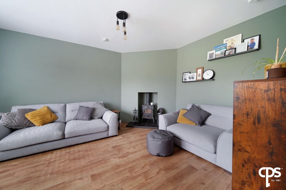 Living Room 4.4m x 3.6m - matching laminate floor covering, wood burning stove