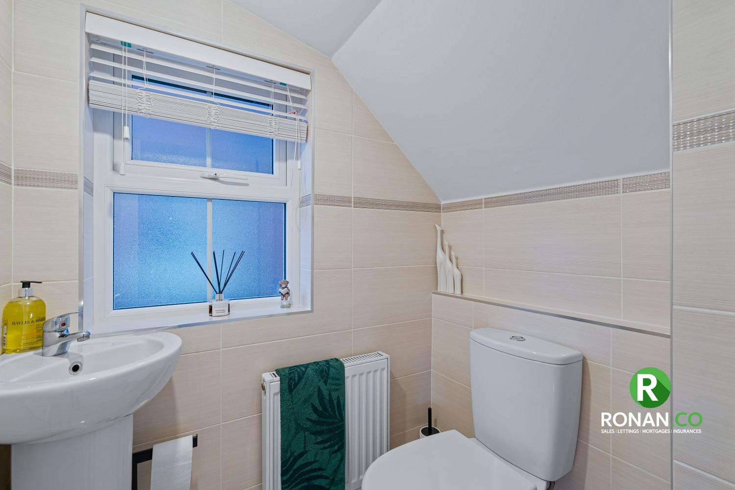 - Tiled flooring, partially tiled walls, WC, WHB, bath, electric shower, fan and single radiator.