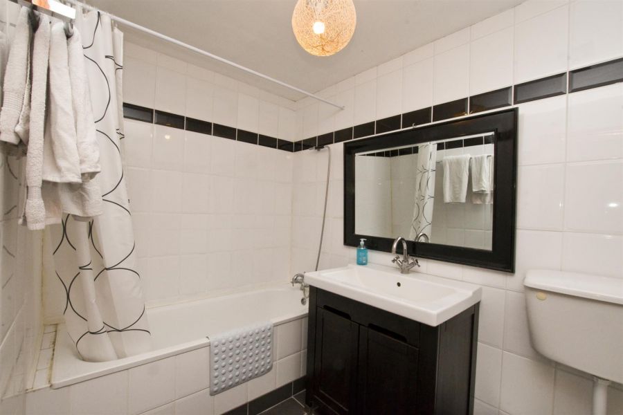 Fully tiled. vanity wash hand basin, panelled bath with mixer tap and shower attachment over. Low flush w.c,.