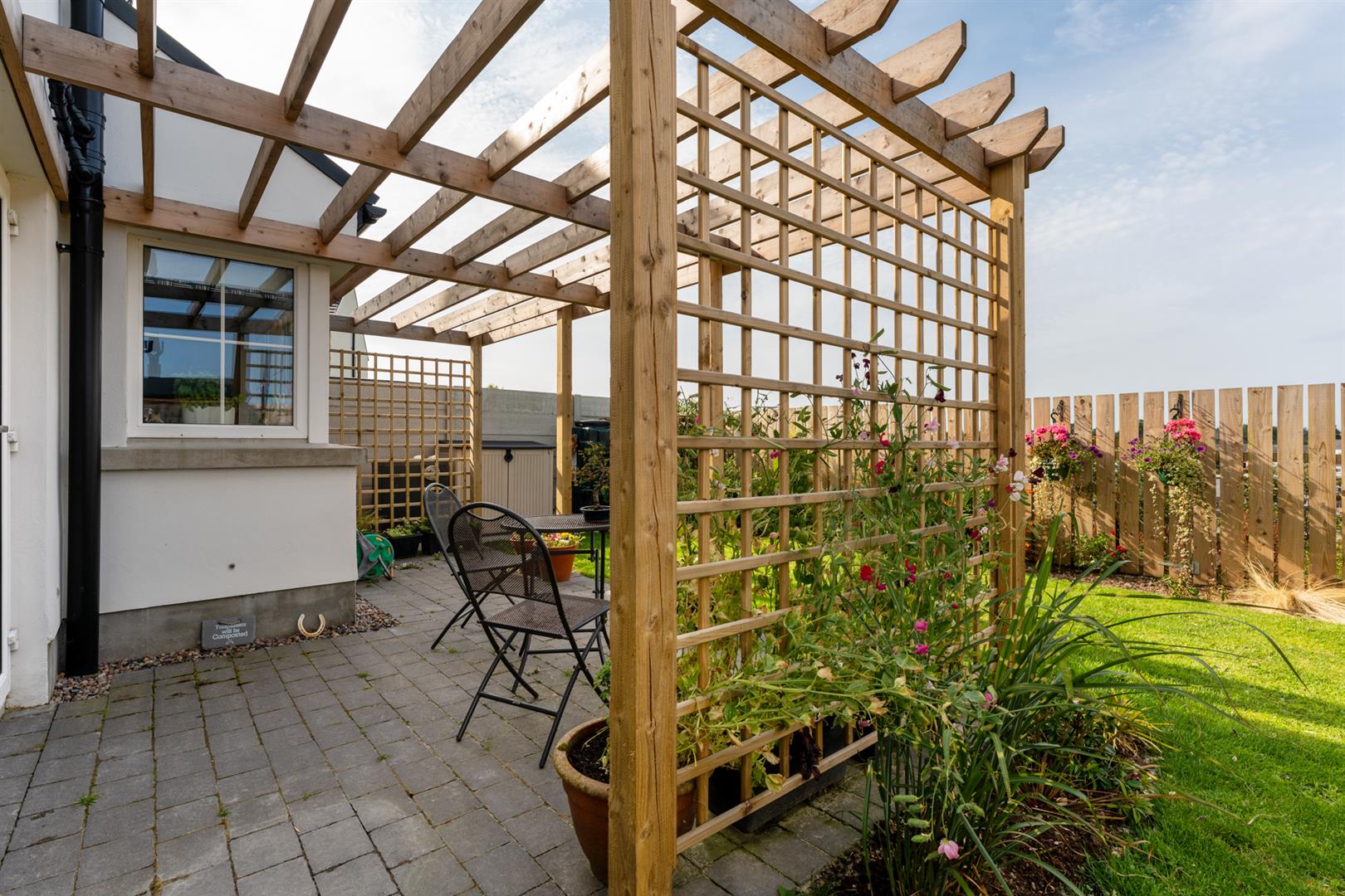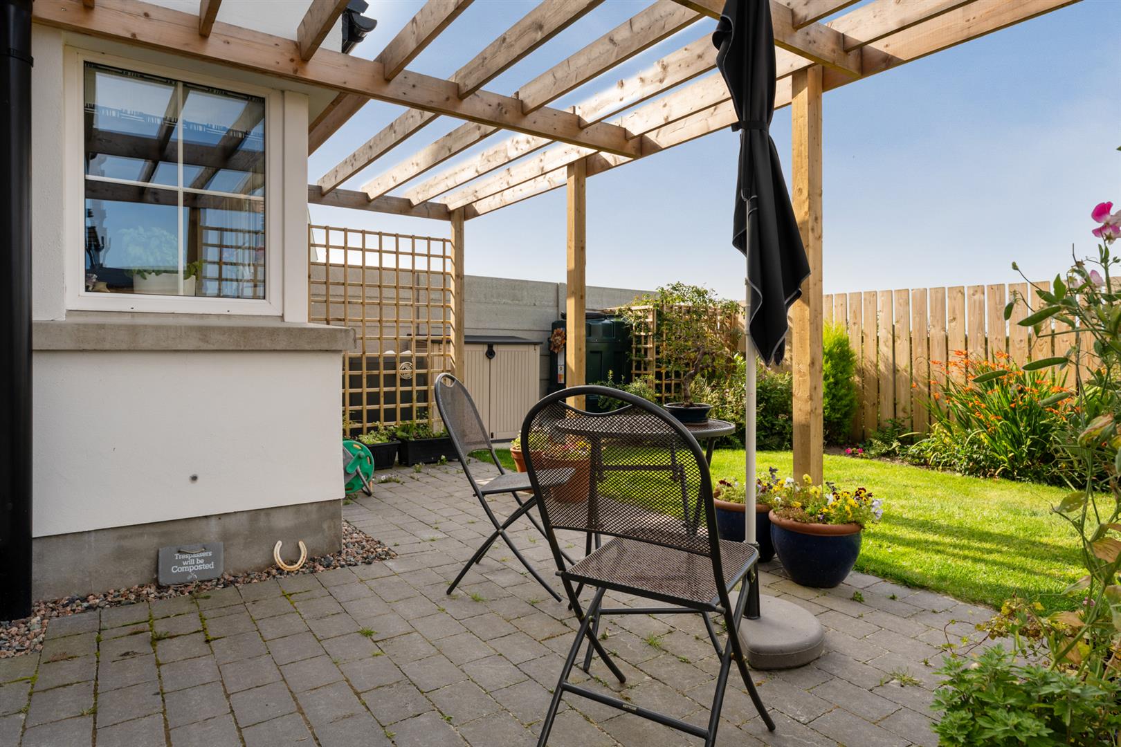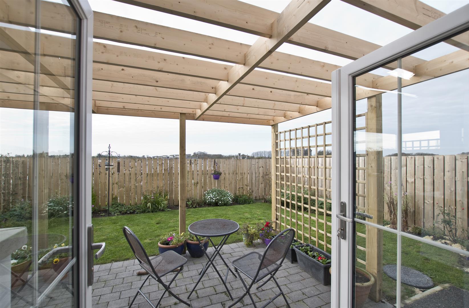 Tarmac driveway to the side with gardens in lawn to the front and enclosed rear garden in lawn with flower beds with outside lighting. Feature pergola with views towards the Sea and Killyleagh Castle.