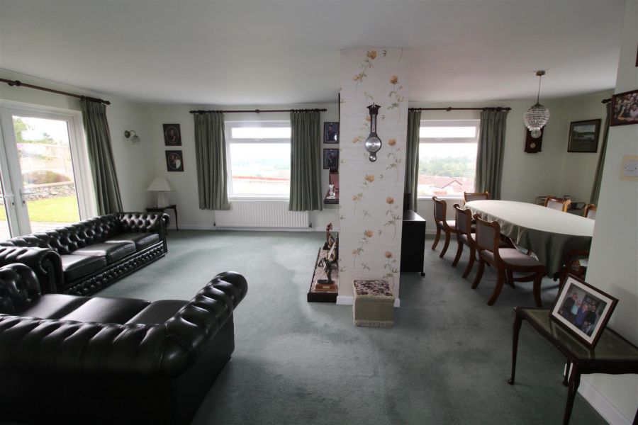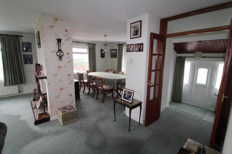 Lounge with patio doors to the rear. Fireplace with gas fire on tiled hearth. Dining room. Views towards Downpatrick Racecourse, Down Cathedral and the Dromara Hills.