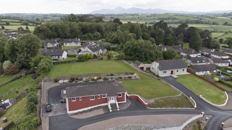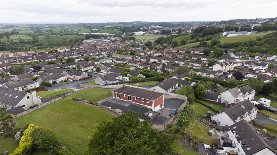 The excellent family bungalow is situated on a spacious elevated site commanding views over Downpatrick Racecourse, Down Cathedral and the stunning countryside. The accommodation comprises 4 bedroom (master bedroom with ensuite), bathroom, Lounge open plan to dining room with kitchen/dining/family area and integral double garage with utility area.