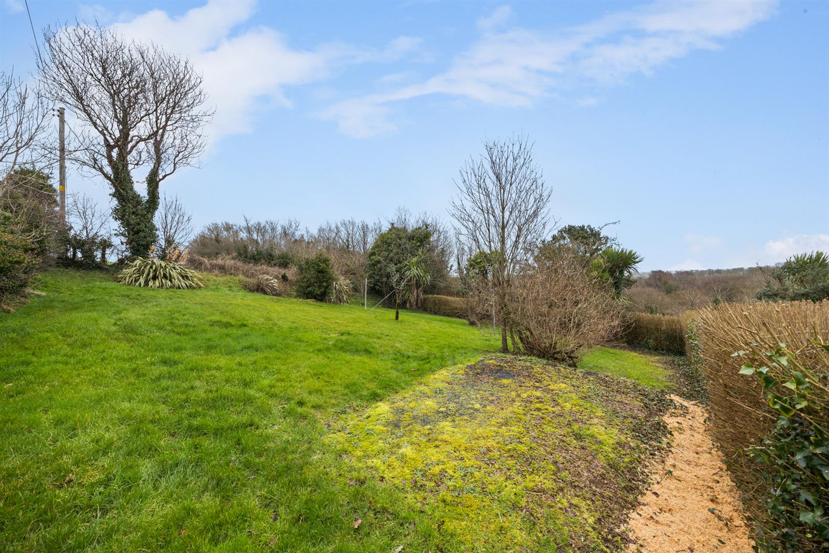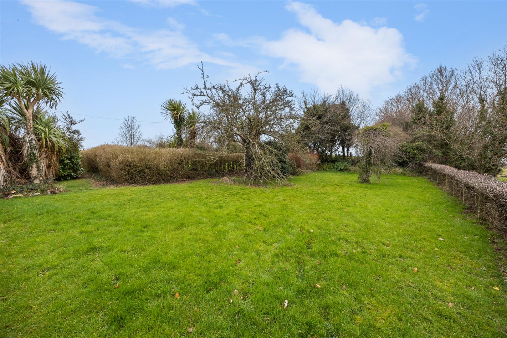 Approached by a gravel driveway with gardens laid out in lawns with mature shrubs and trees. Rear patio area with steps to further lawns.