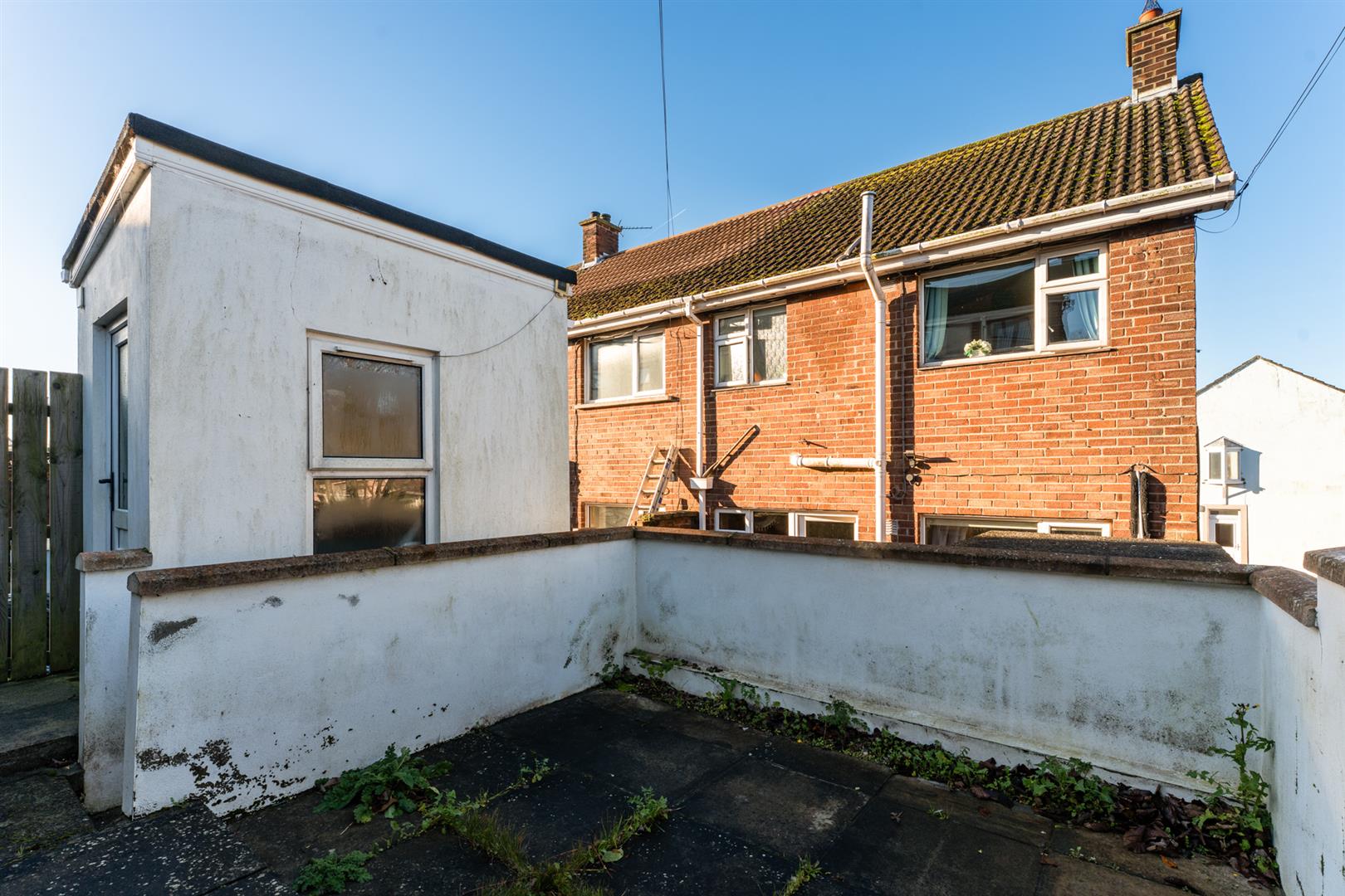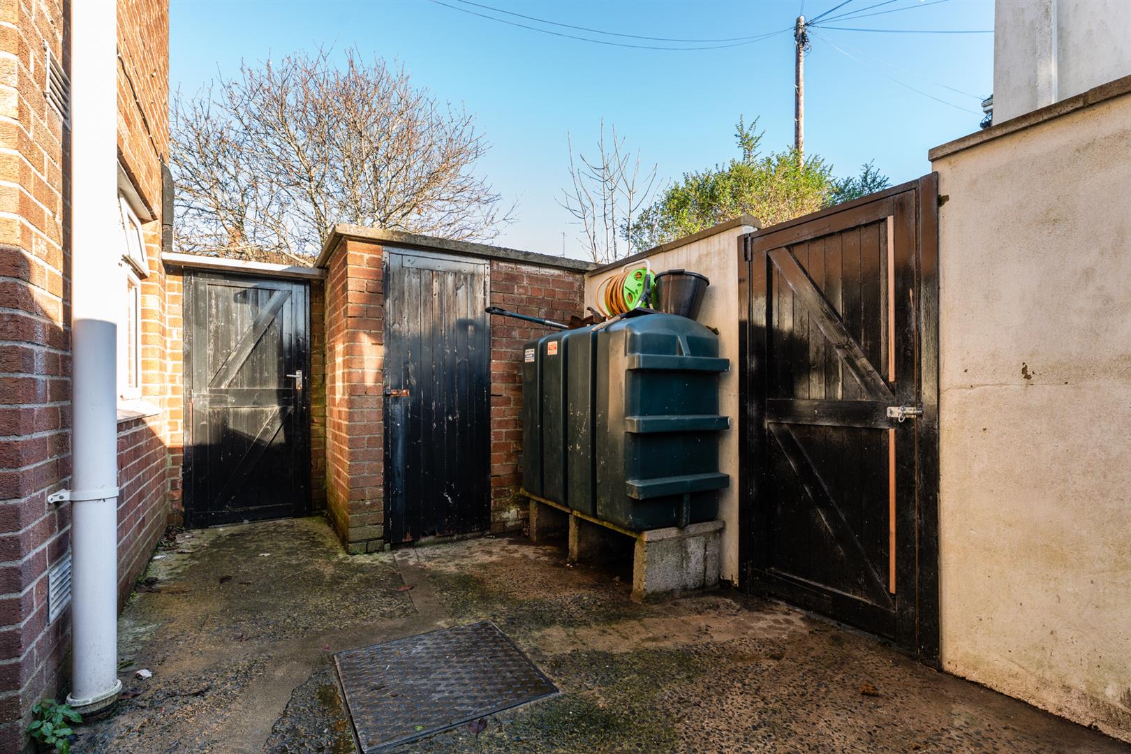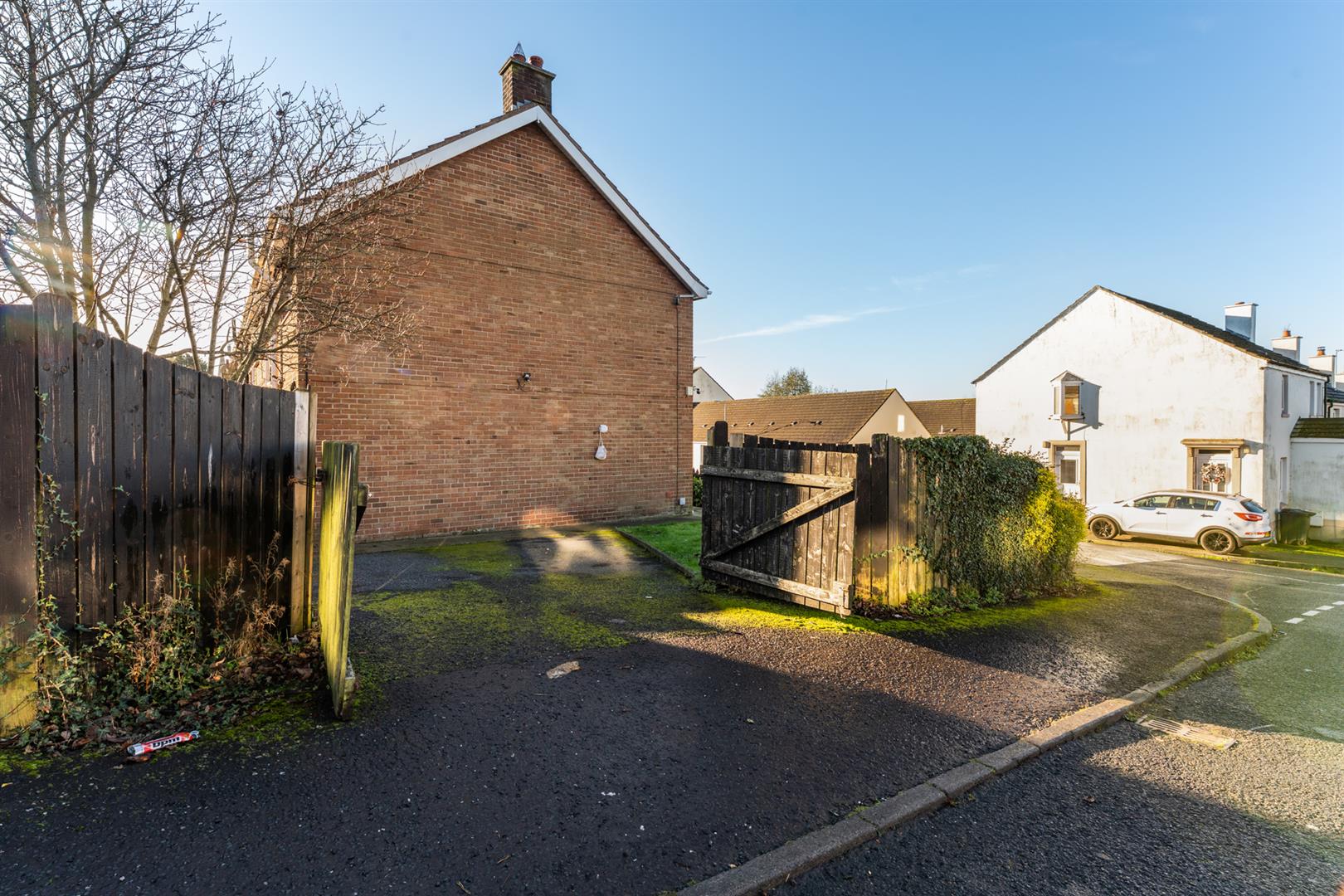 The property is located on a large corner site with off street parking and garden laid out in lawns. There is a small outhouse to the rear. Flower beds and mature plantings.