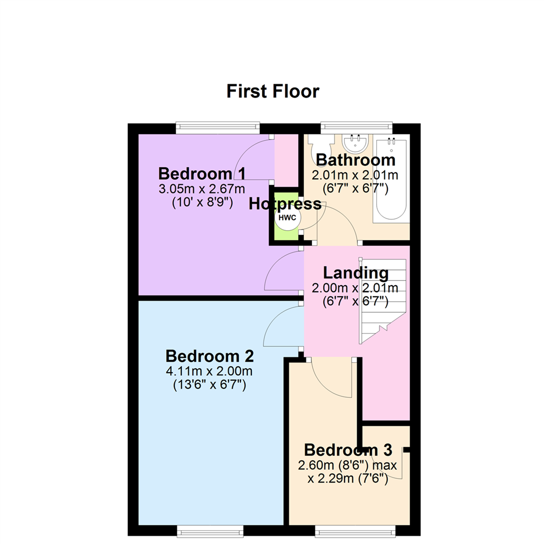 Bedroom 3 8'6" X 7'6" (2.60m X 2.29m)