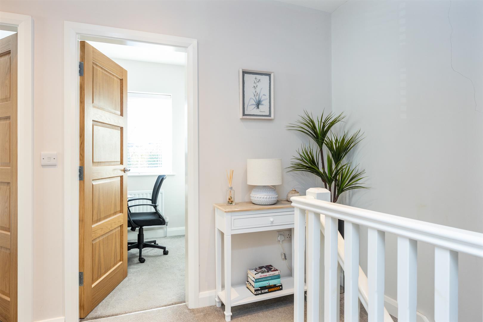 Window to front, door to: